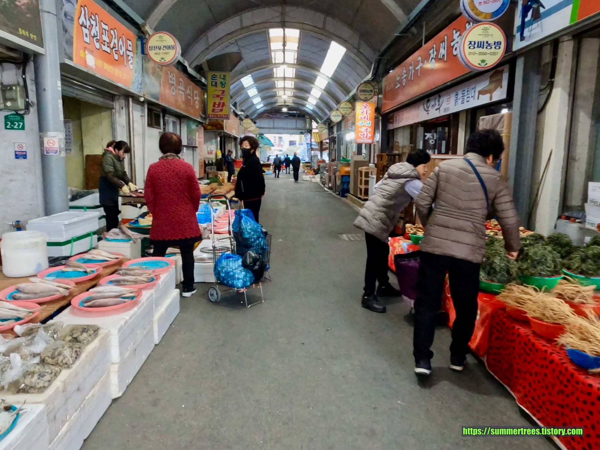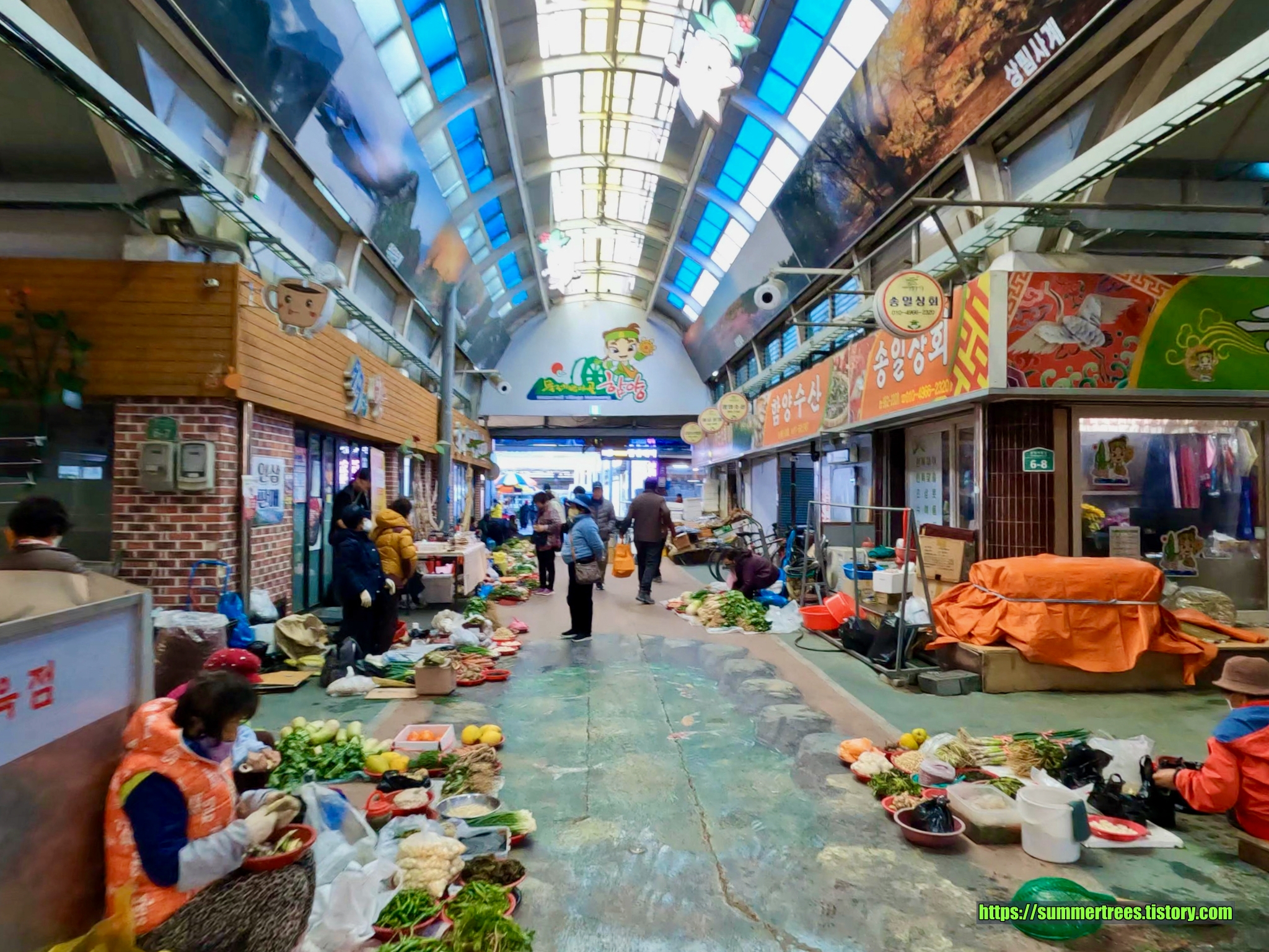 숙소 앞 함양시장을 구경하면서 아침 식사를 뭘로 할까 탐색하다 황태해장국으로 결정.