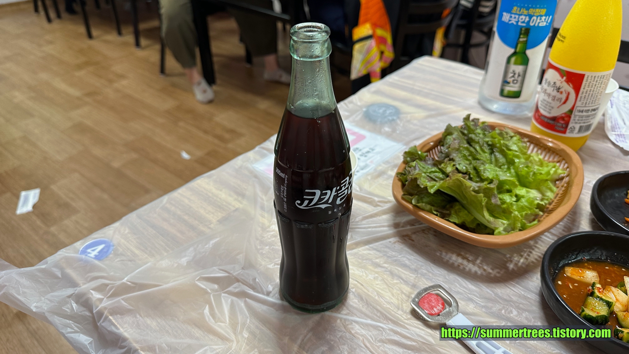 콜라를 시켰더니 특이하게 백만년만에 보는 듯한 콜라병이 나왔다.