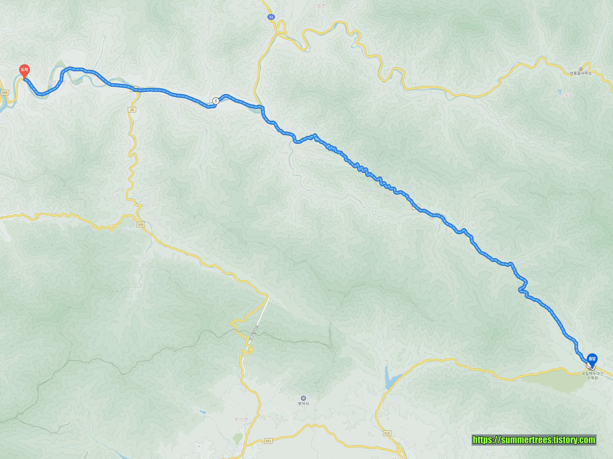 봉화군의 국립백두대간수목원에서부터 영월의 대야2교까지 88번 지방도의 단풍이 너무 예뻤다.