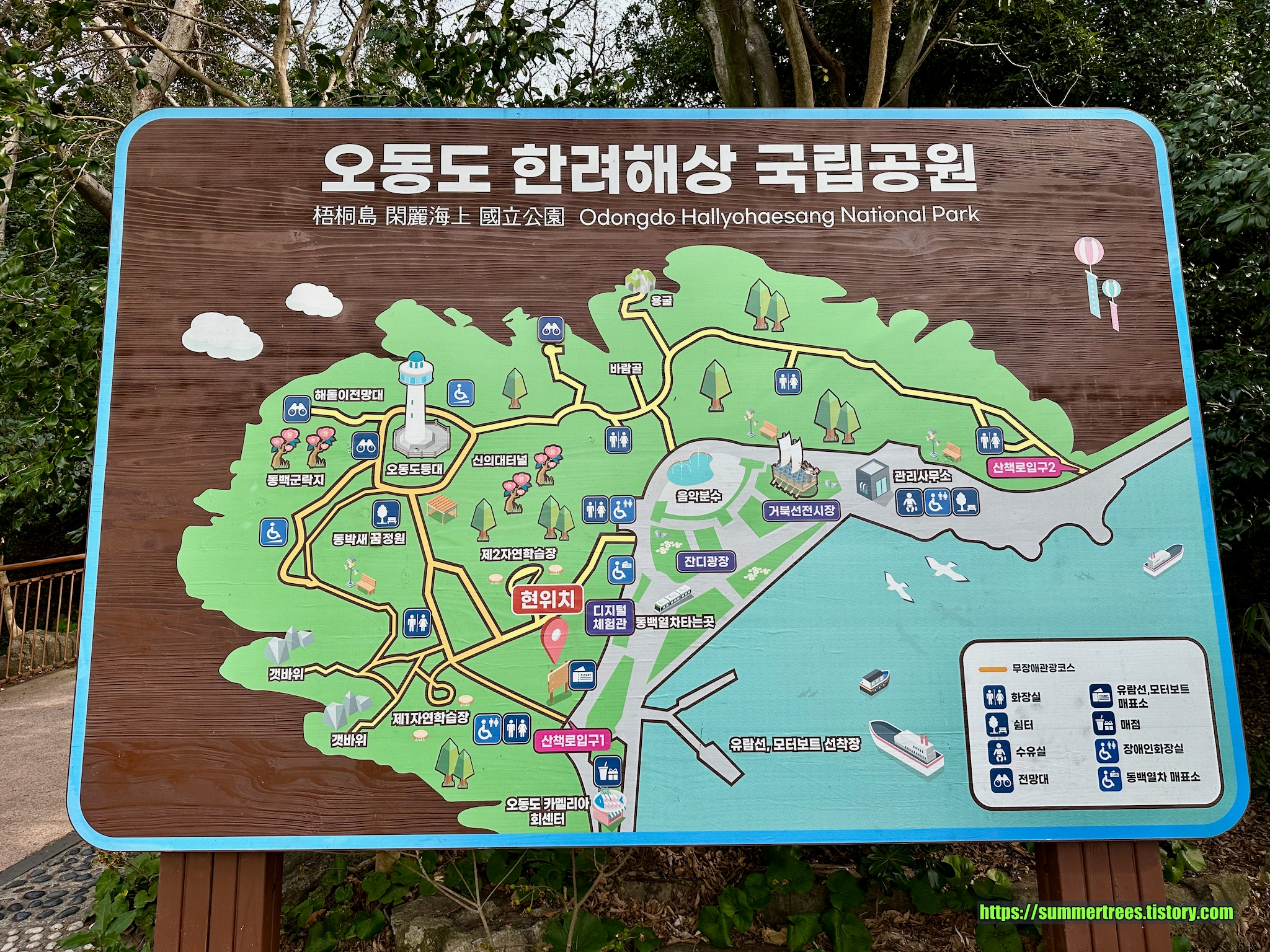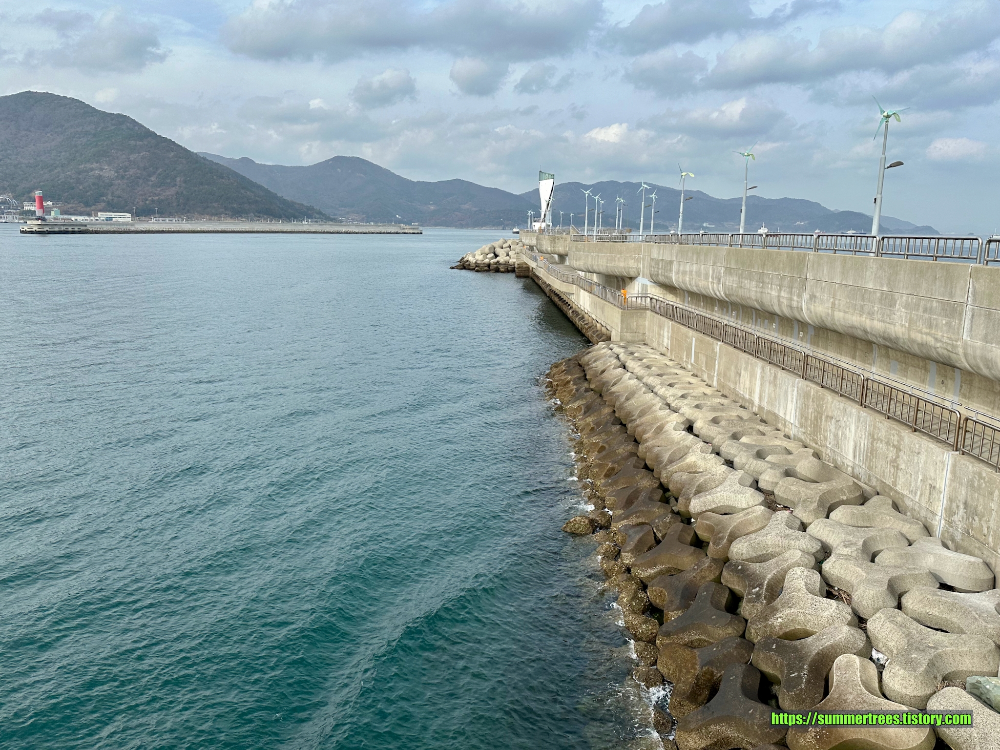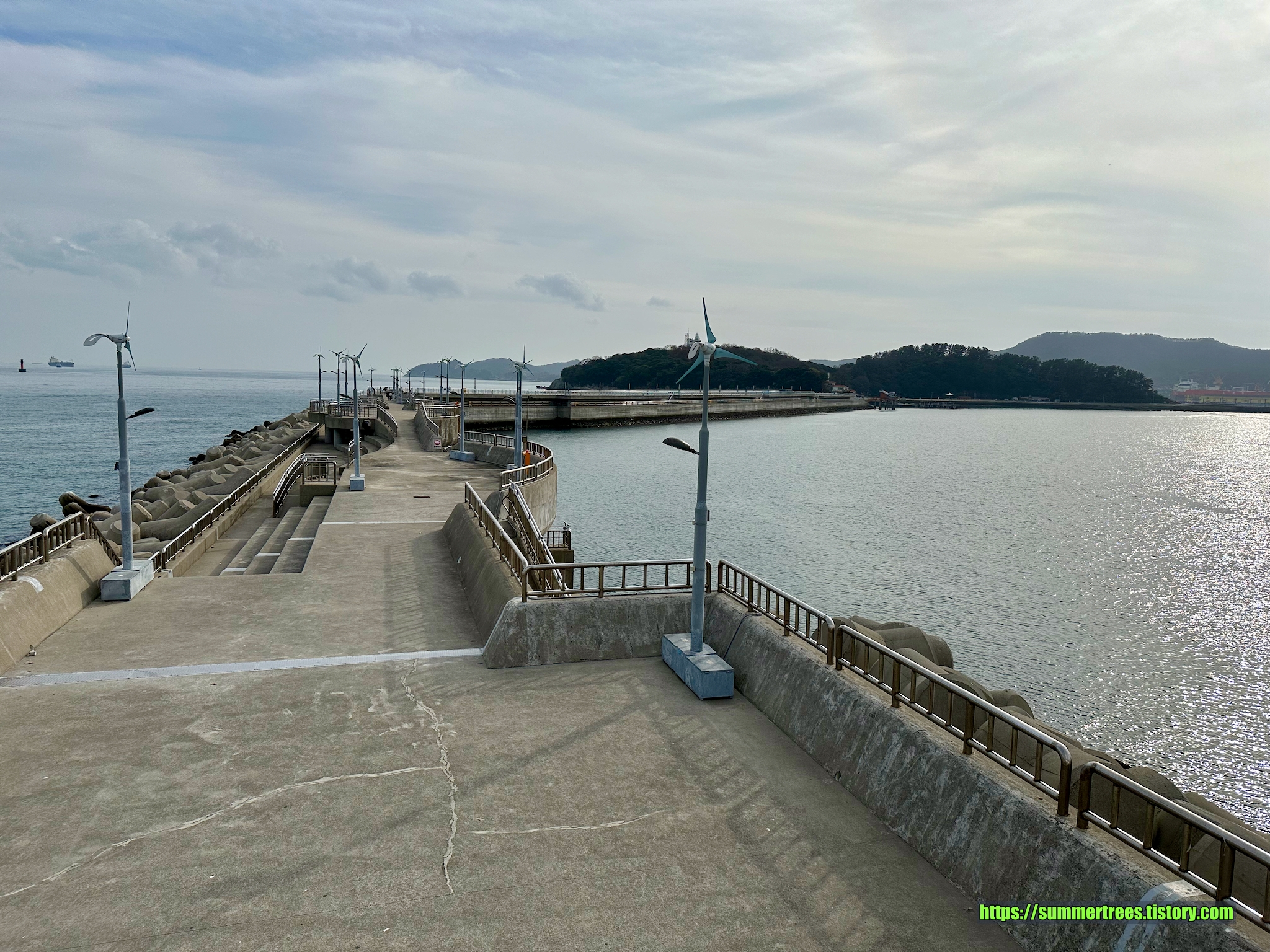 유튜브에서 얻은 정보로는 오동도 투어는 1 시간 정도 걸린다고 했는데 직접 가보니 어림도 없다. 최소 2 시간은 잡아야 한다. 자전거를 빌려 투어를 했고 방파제 끝까지 가보고 오동도등대까지만 갔는데도 딱 1시간 걸렸다.