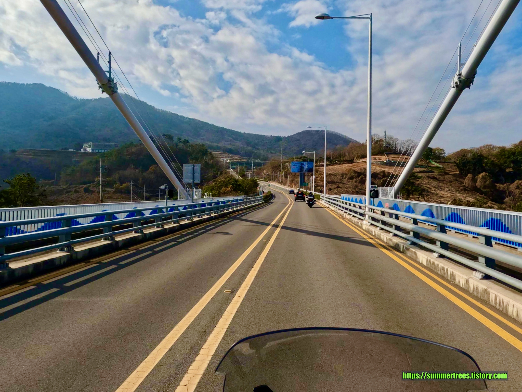 기둥 두 개가 삼각형을 만드는 이쁜 다리.