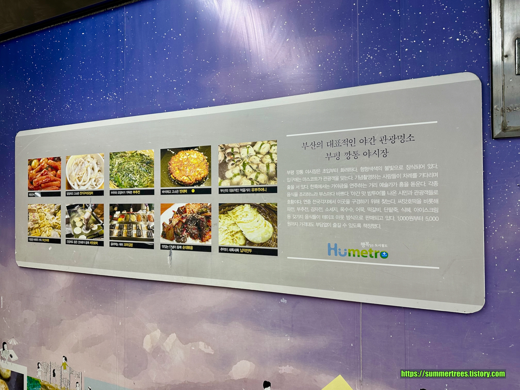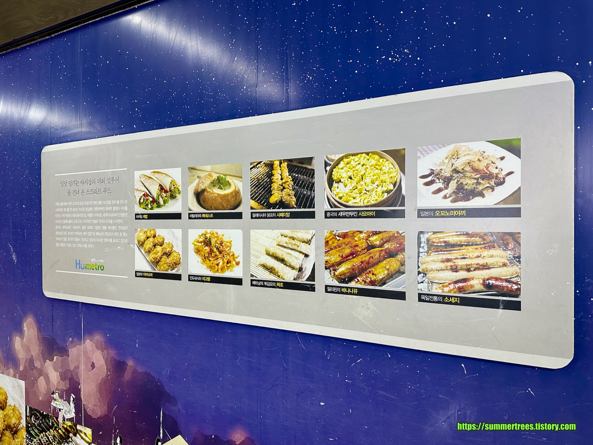 지하철에 붙은 야시장 메뉴, 한식메뉴는 찾을 수 있었지만 그 외 것은 거의 없었다