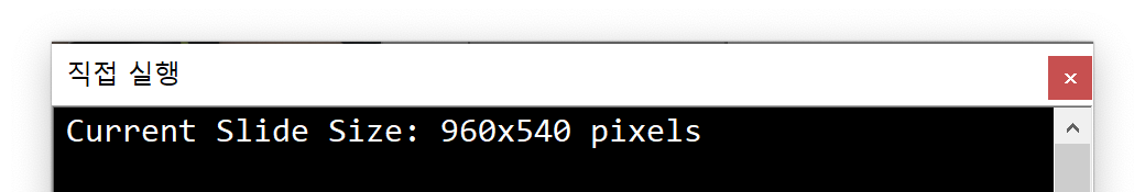 그래서 픽셀단위로 자동화를 하려고 할 때 슬라이드 사이즈를 먼저 알아야 다음 자동화를 할 수 있다. 그래서 현재 슬라이드의 크기를 알 수 있는 코드를 작성한다.