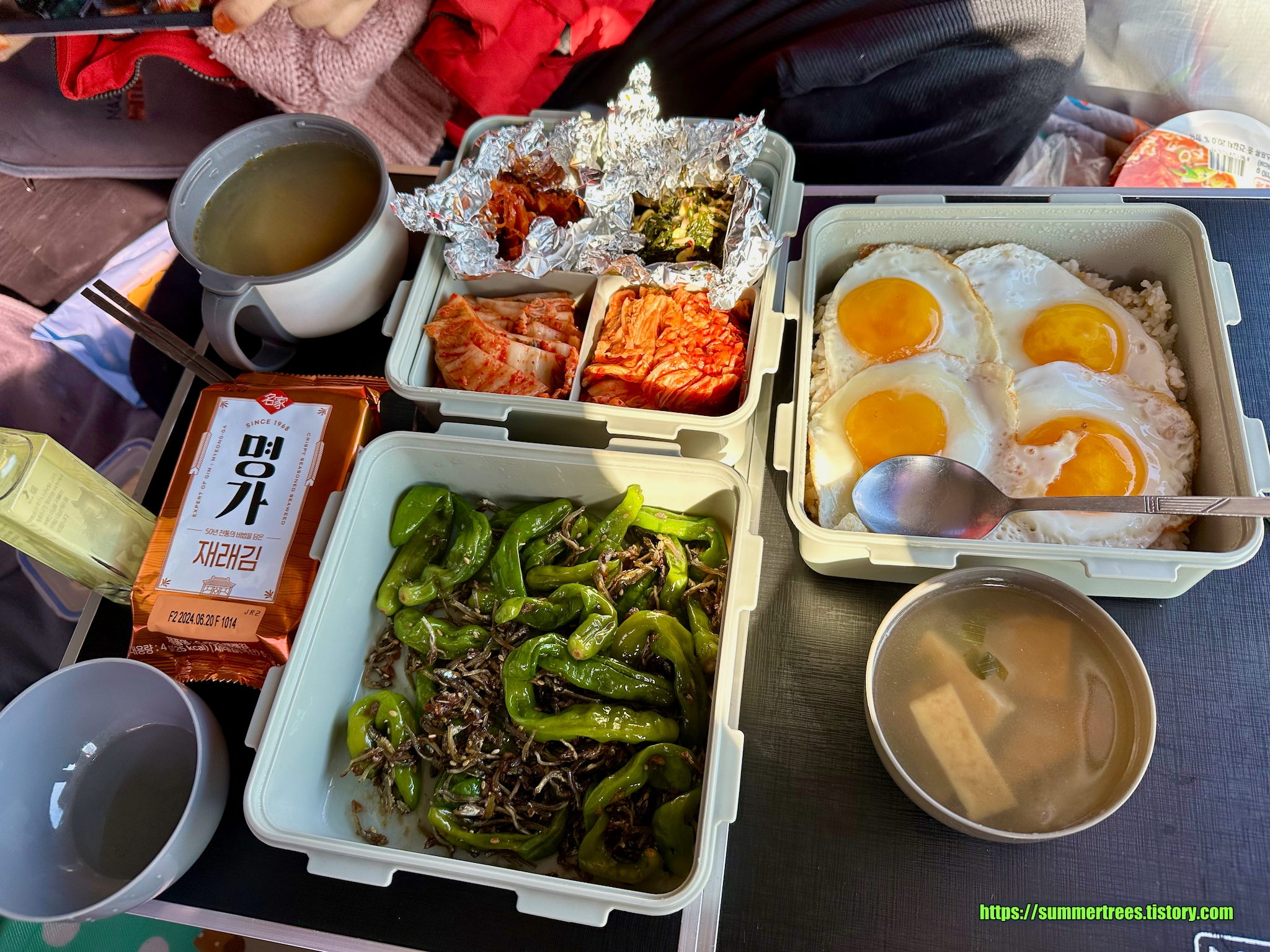 도시락을 챙겨 갔다. 야외에서 먹으려 했는데 기온은 괜찮았지만 바람이 많이 불어서 차 안에서 먹어야 했다.