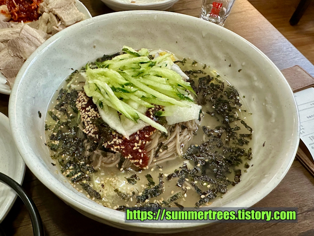 그리고 가격이 꽤 높다. 막국수에 수육까지 먹으면 국수 먹는 느낌이 아니다.