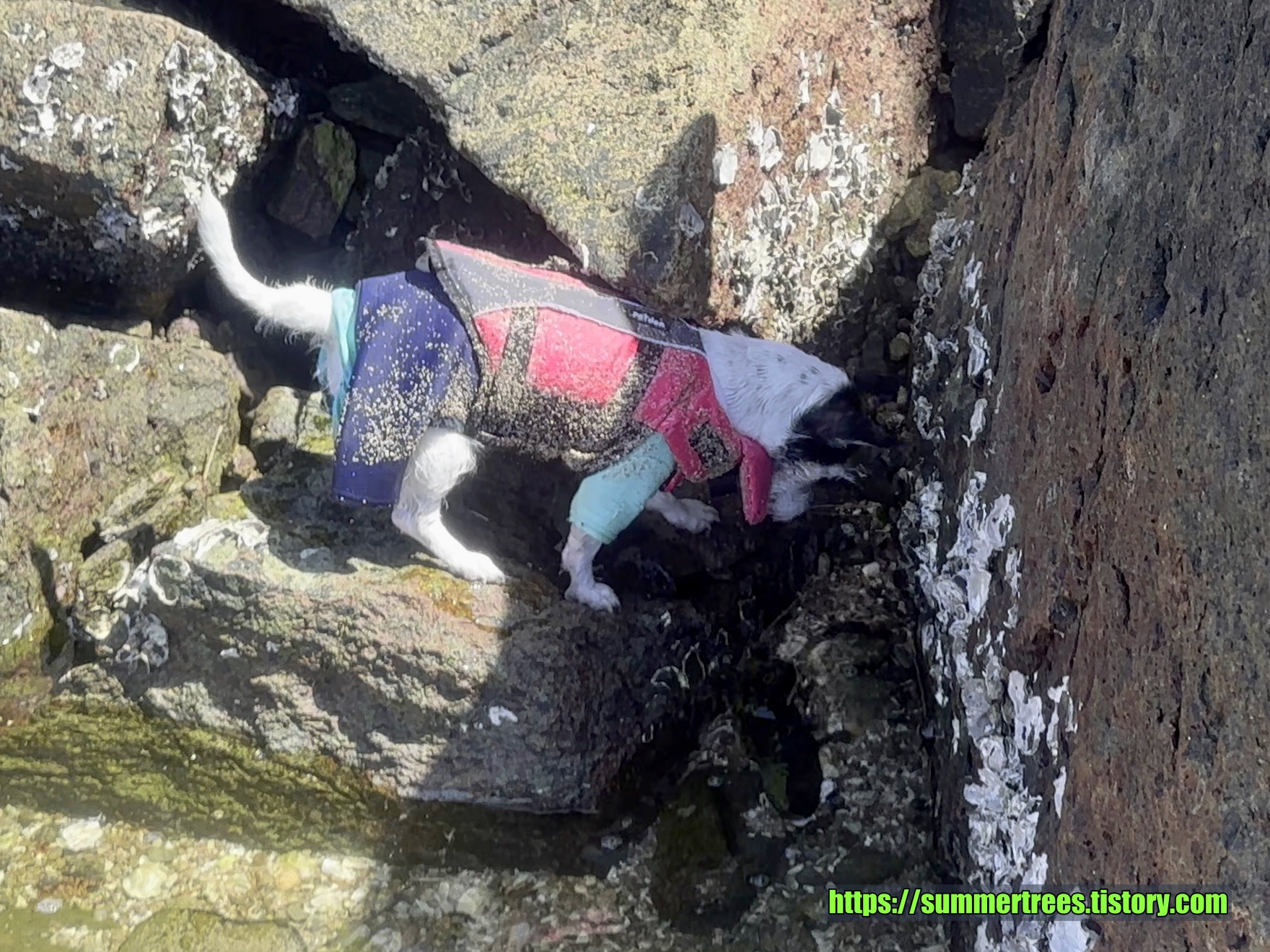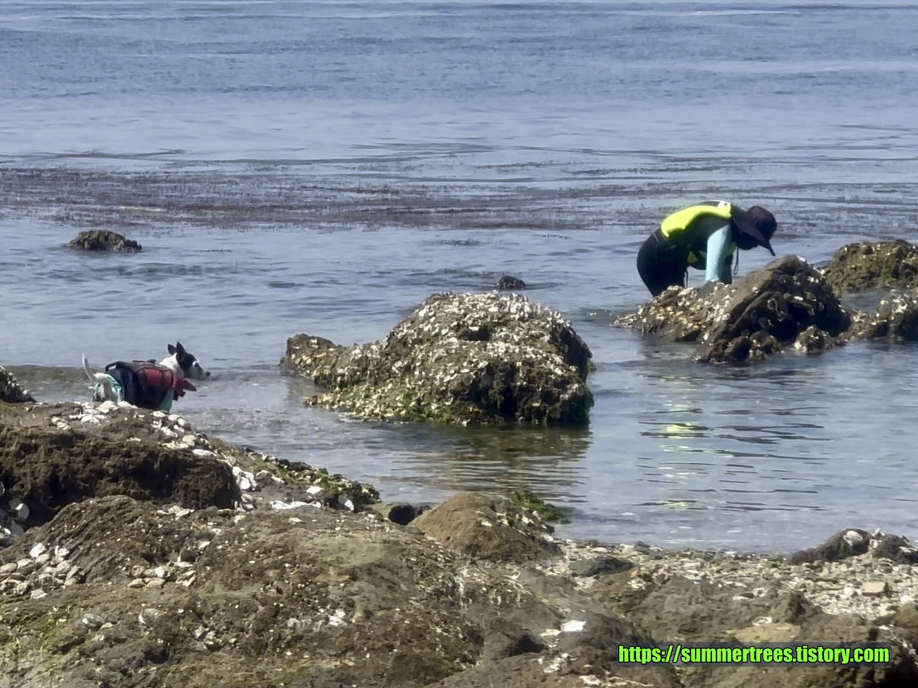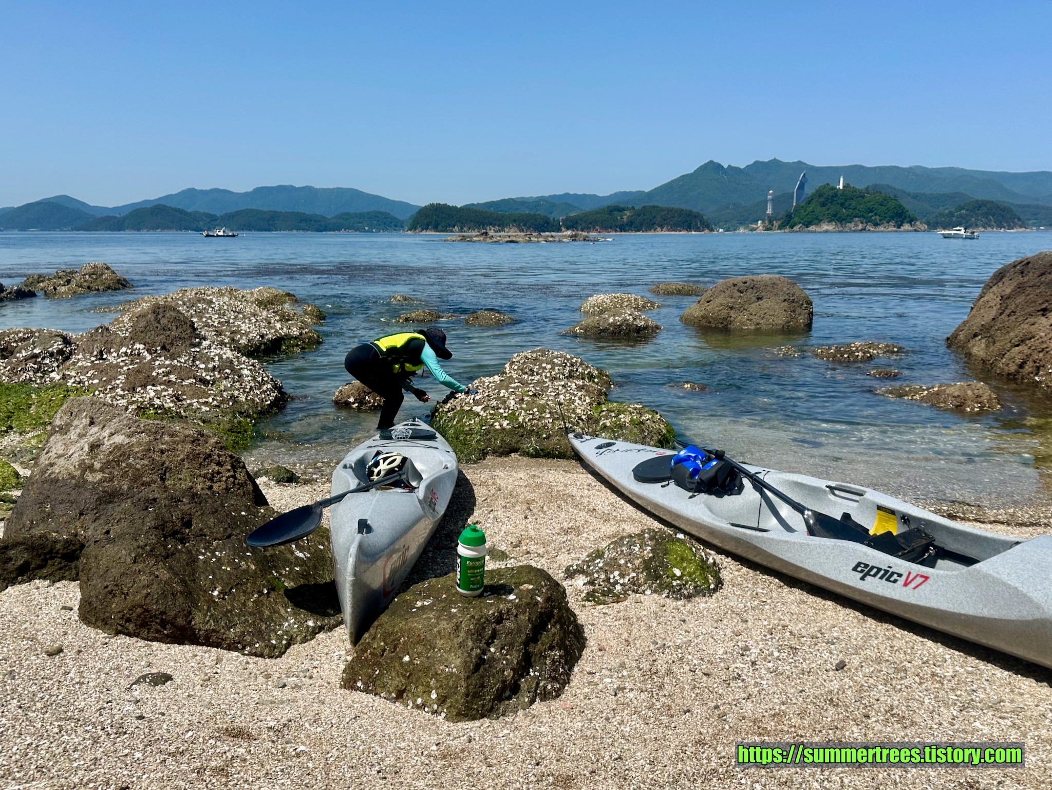 728x90다음 행선지는 언제나 지리도. 이 섬의 해변을 우리는 챌비치라 부른다. 패들러들에게 나들이하기 좋은 장소다. 마야를 풀어놓을 수 있는 유일한 장소. 초리도와 함께 고동을 따는 장소이기도 하다.