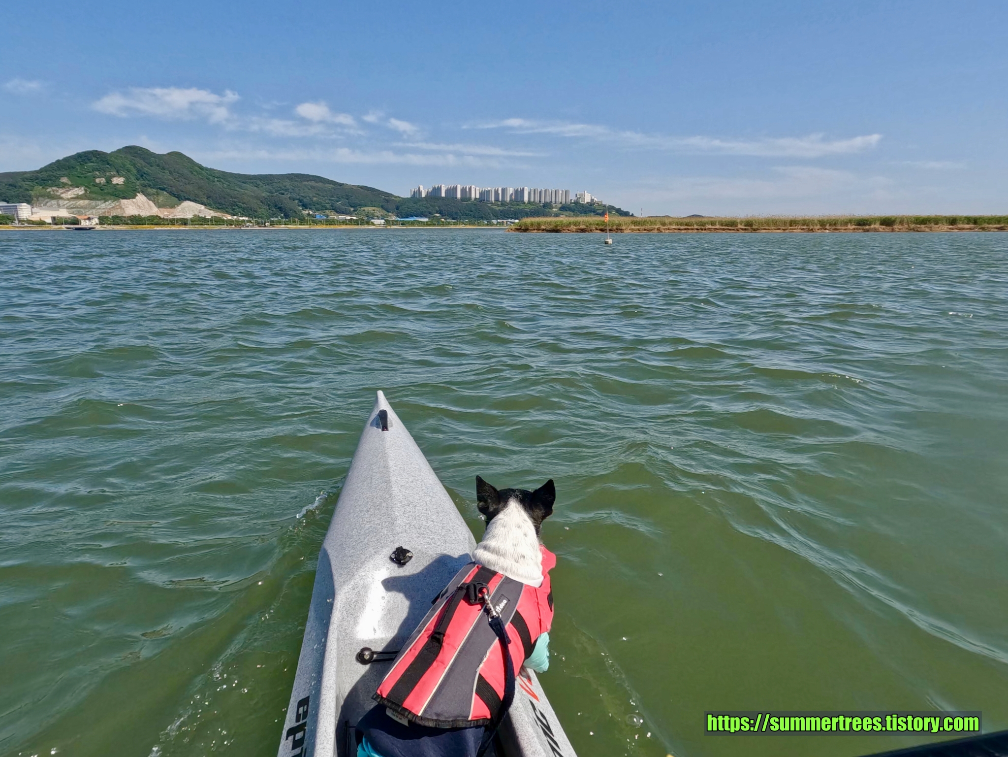 잠시 쉬고 가고 싶었던 을숙도 남단으로 방향을 돌렸다. 지난겨울 갔을 때 본 억새밭이 장관이어서 기대를 했지만 부근까지 갔을 때 물 깊이가 너무 얕아 카약조차도 접근할 수 없었다. 만조일 때는 갈 수 있을지 다시 도전해 봐야겠다.