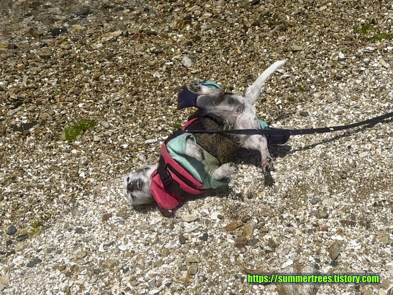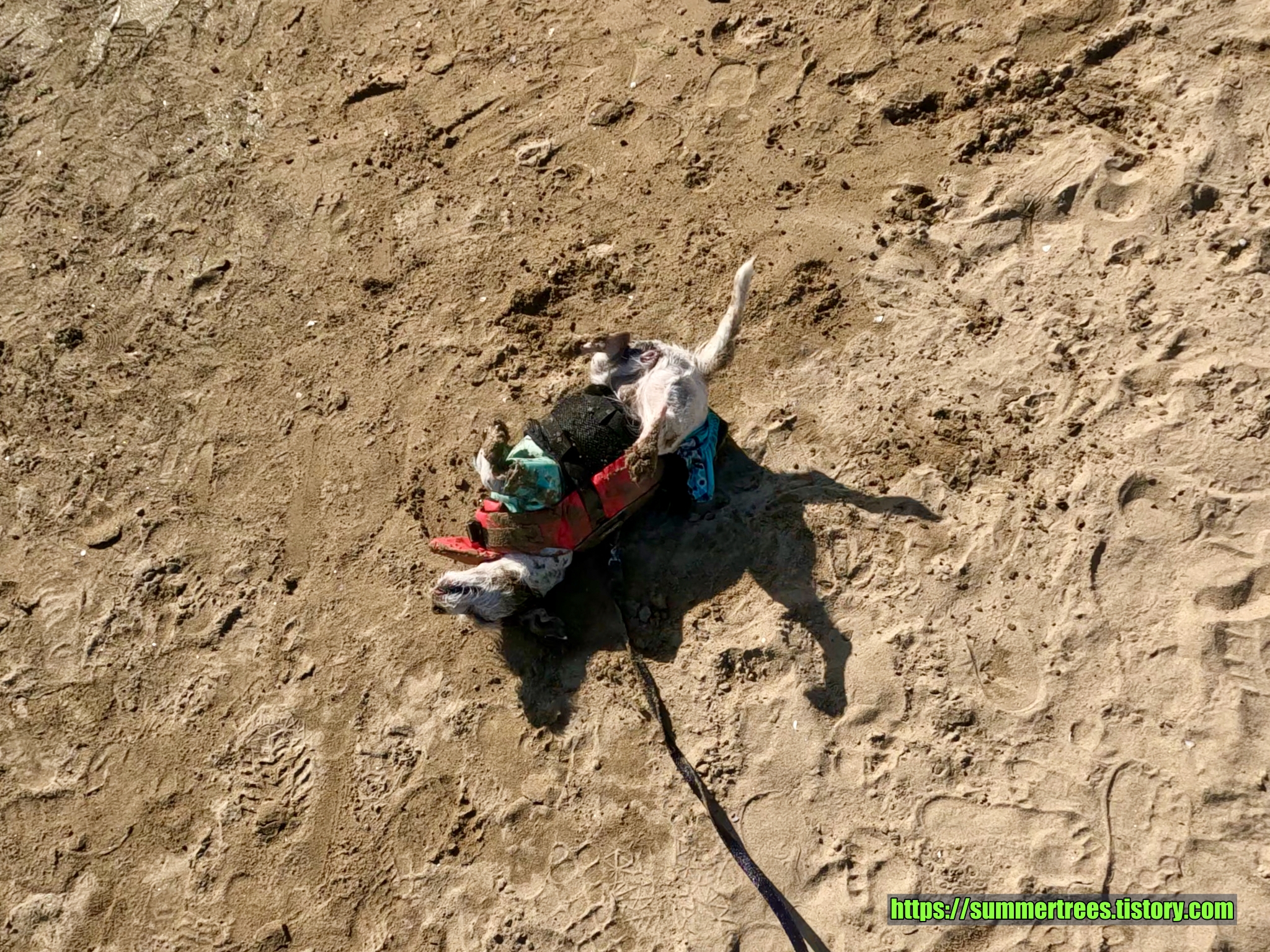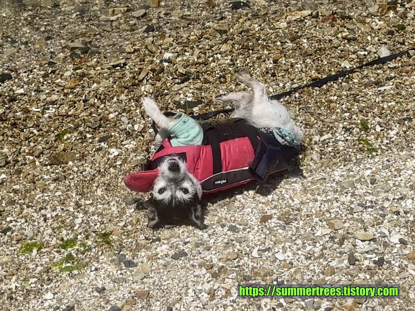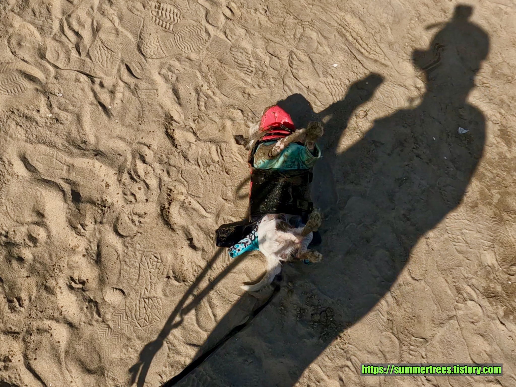 배와 마야에게 묻은 모래를 바닷물에 씻고 모래사장 밖으로 옮기는데 무거워 혼났다.