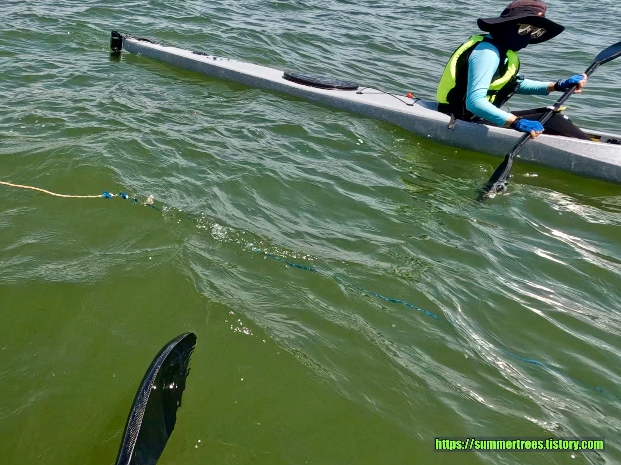 내 카약은 스마트러더가 아니라서 부표줄에 종종 걸리는데 이 날도 걸렸다.