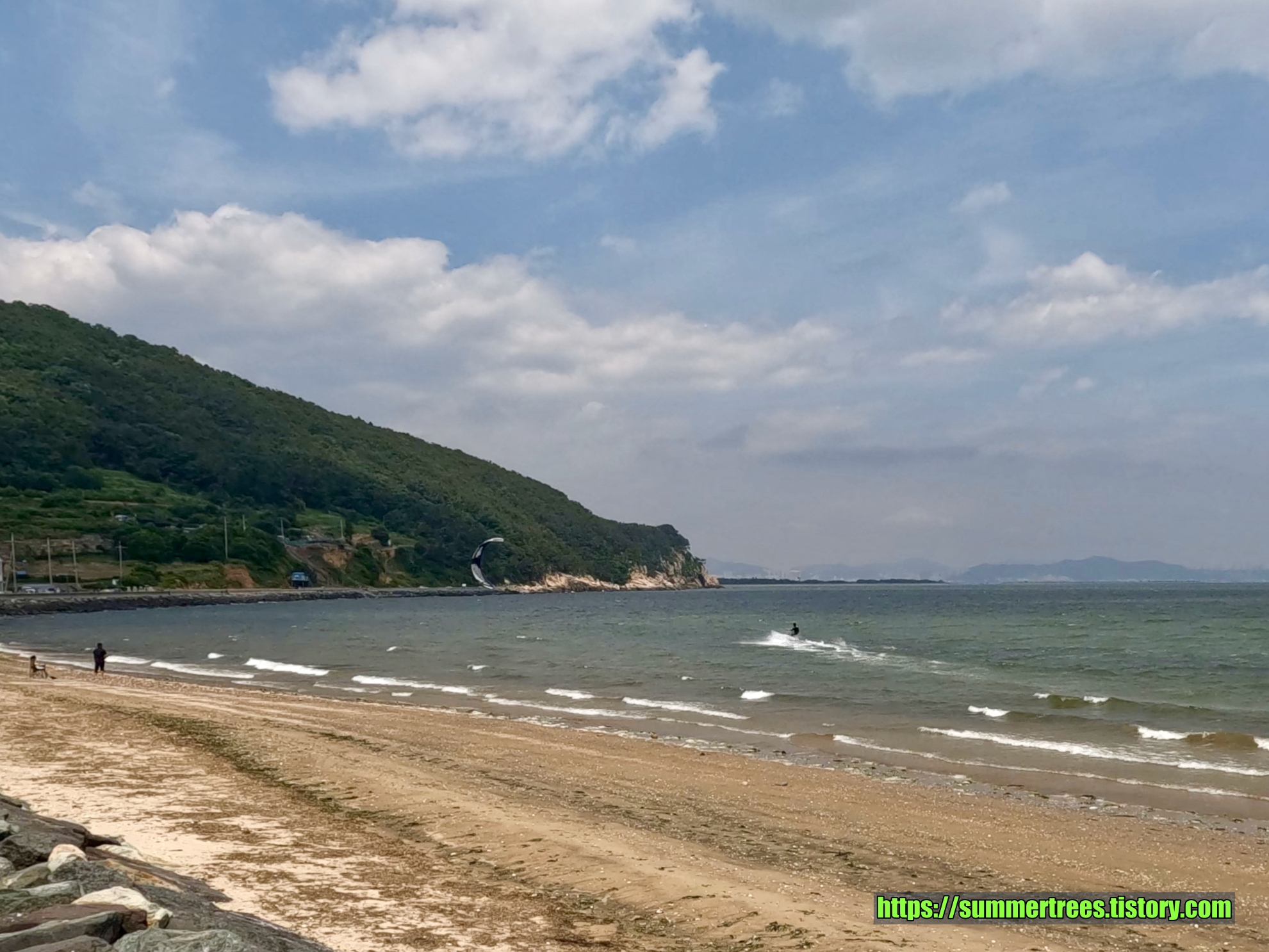 나중에 카약동호회에서 들은 얘긴데 기온의 일교차가 큰 요즘(15-25도)은 기온차에 의한 바람이 많아 카이트보드나 윈드서핑하기에 좋다고 한다.