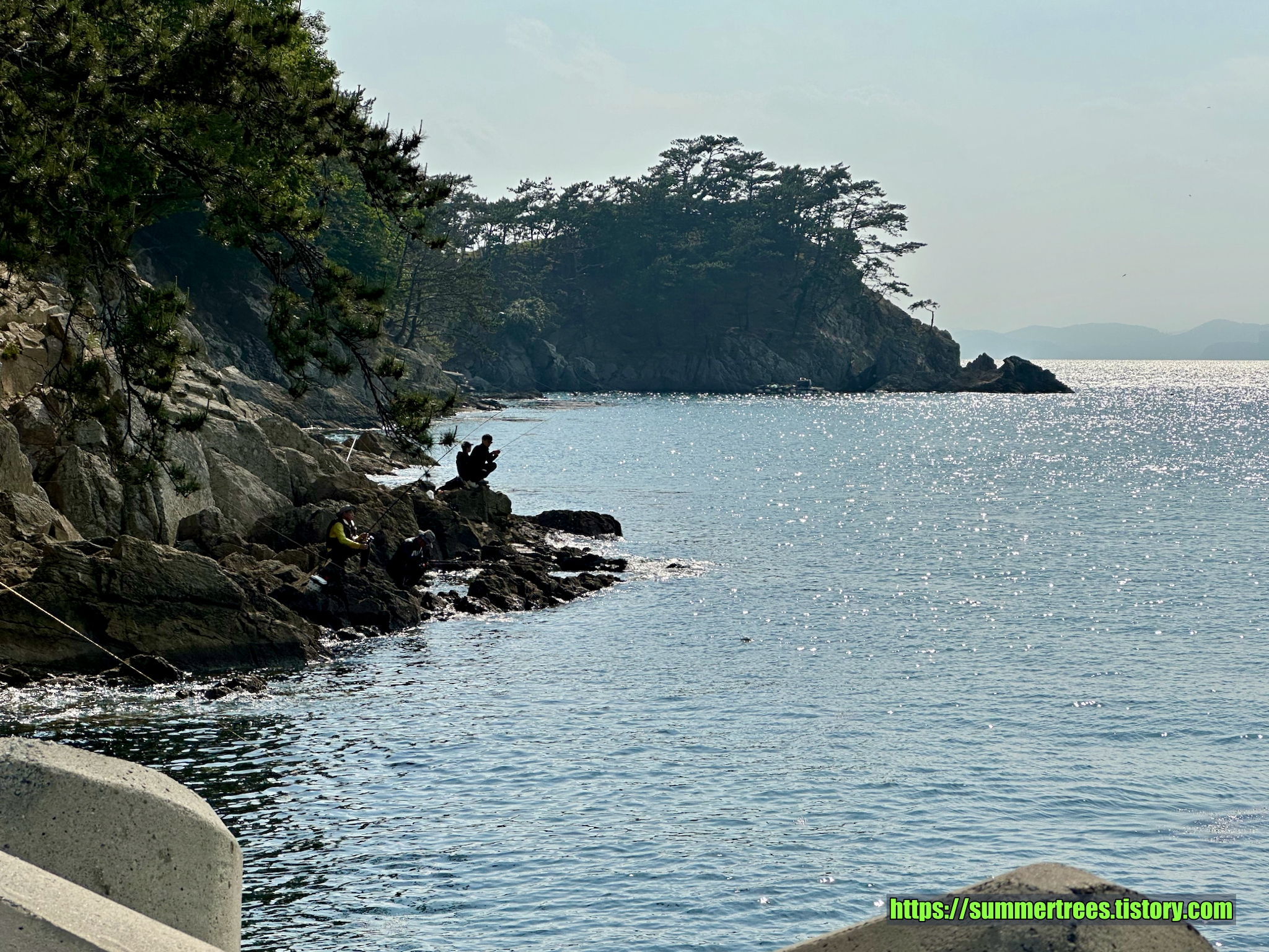 외양포항 테트라포드 넘어 갯바위에서 사람들이 낚시를 하고 있었는데 어떻게 갔는지 궁금하다.