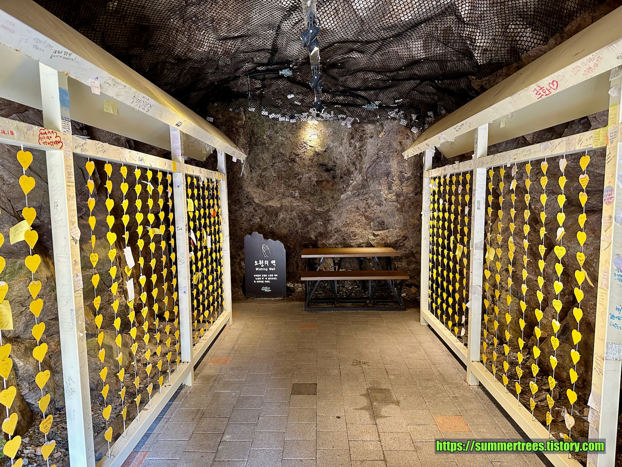 일몰동굴과 소원동굴. 소원동굴엔 사람들이 소원을 써서 붙여놨는데 포스트잇이 없는데 어떻게 붙였을까? 미리 준비해온 걸까?