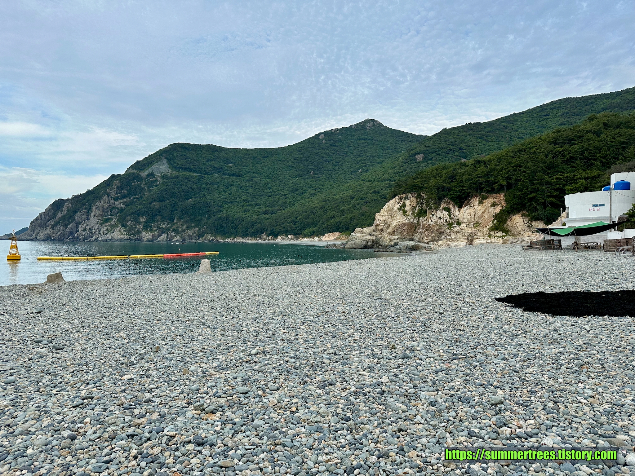해수욕장 자체도 애기들과 즐기기에 좋다고 말 할 수 없다. 몽돌이란 것이 모래사장과는 다르게 넘어져 다치거나 발목을 접지를 수 있다. 물깊이도 급격하게 깊어지는 곳이라 사람들이 쉽게 찾고 놀 수 있는 곳이 아니다. 그런 면을 고려해서일까 해수욕장 곁에 얕은 수영장을 별도로 만들고 있었다.