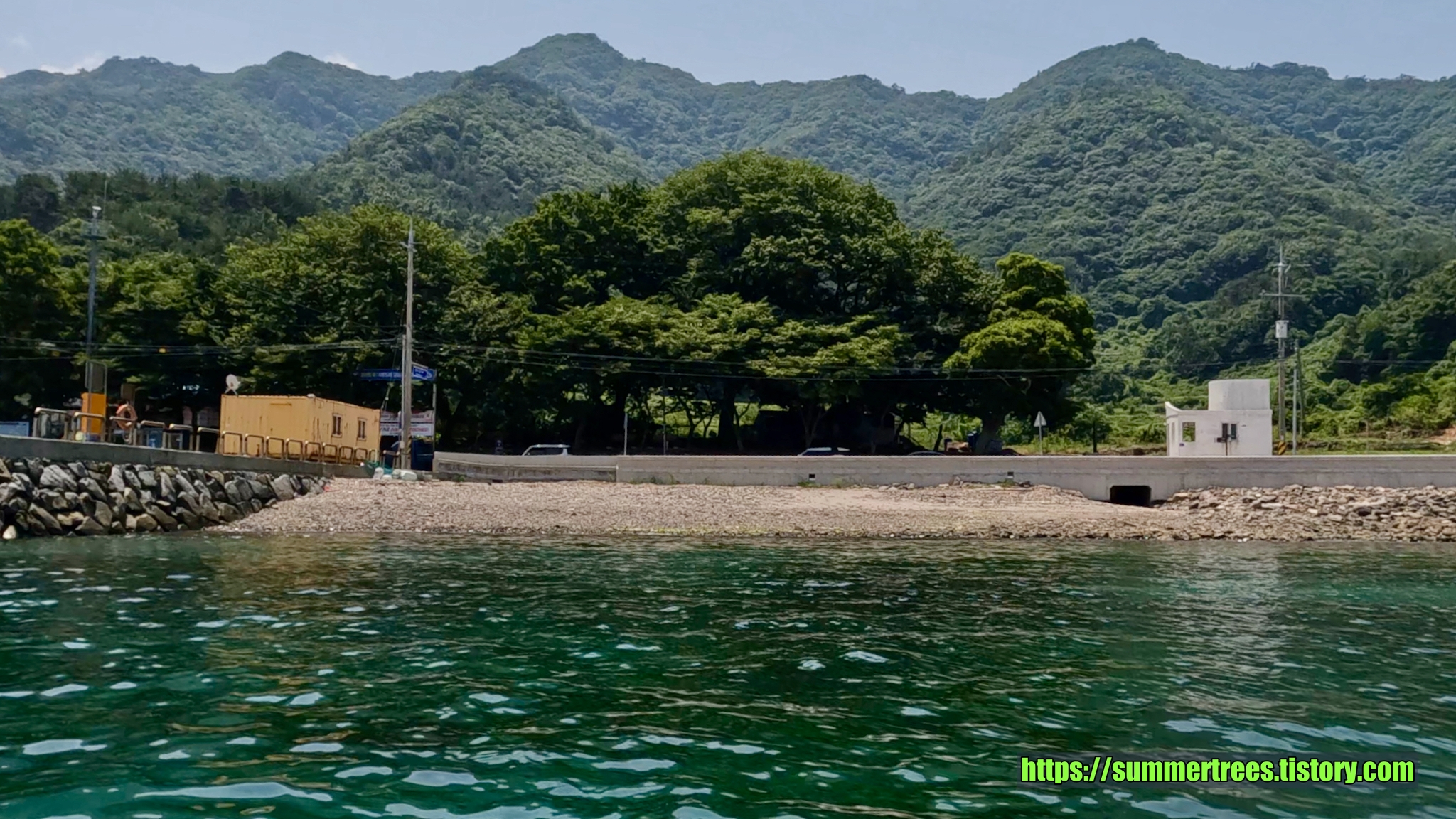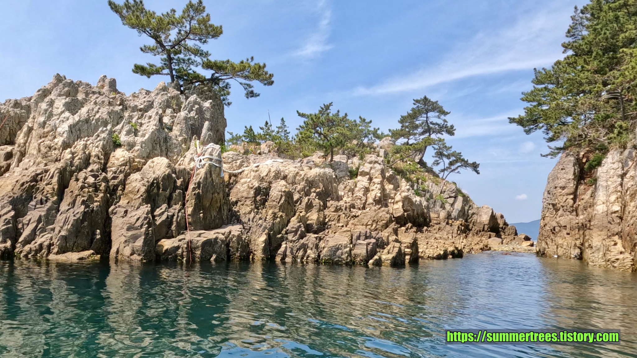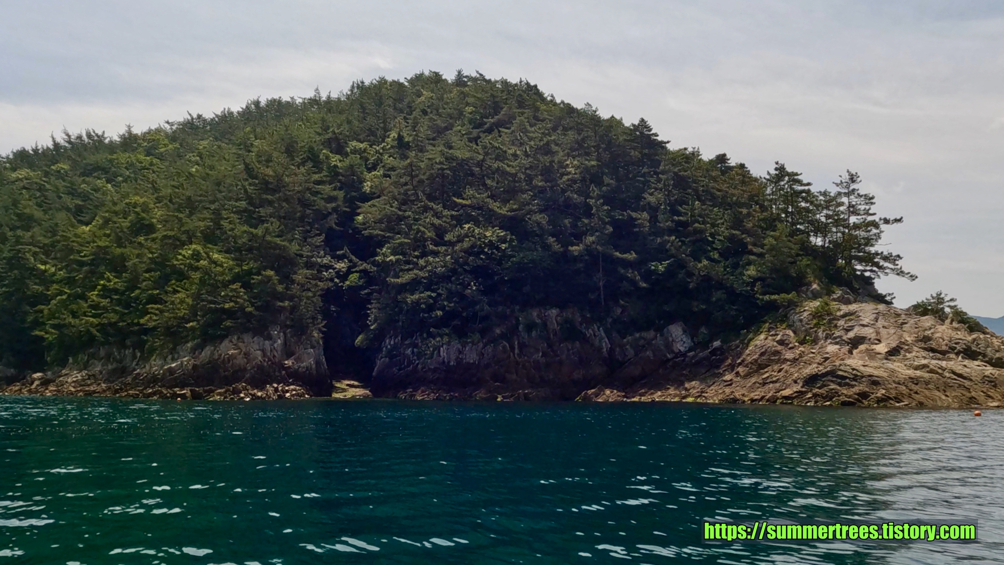 섬 양쪽에 통로처럼 보이는 틈새가 있다. 사량도 내지항