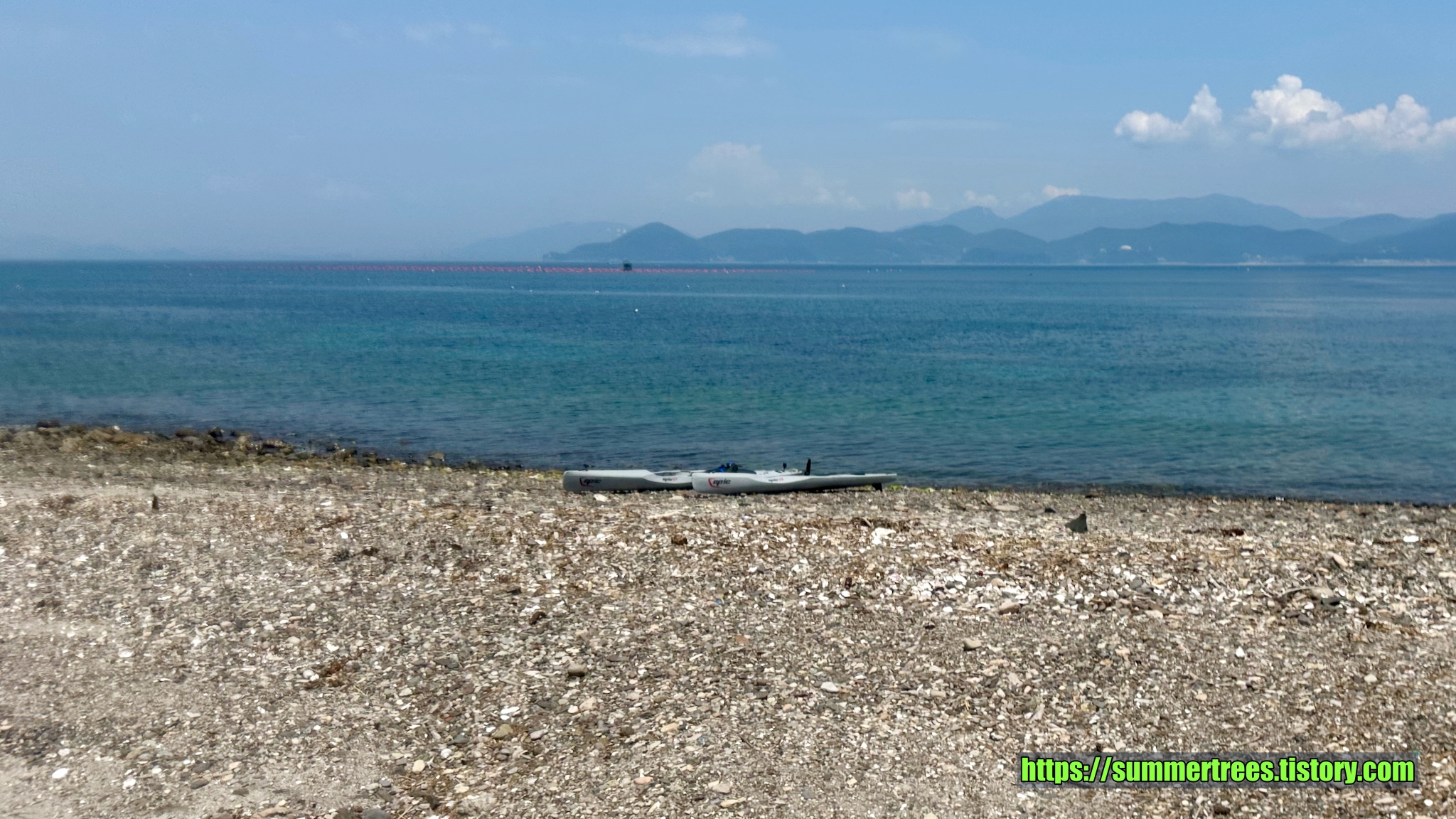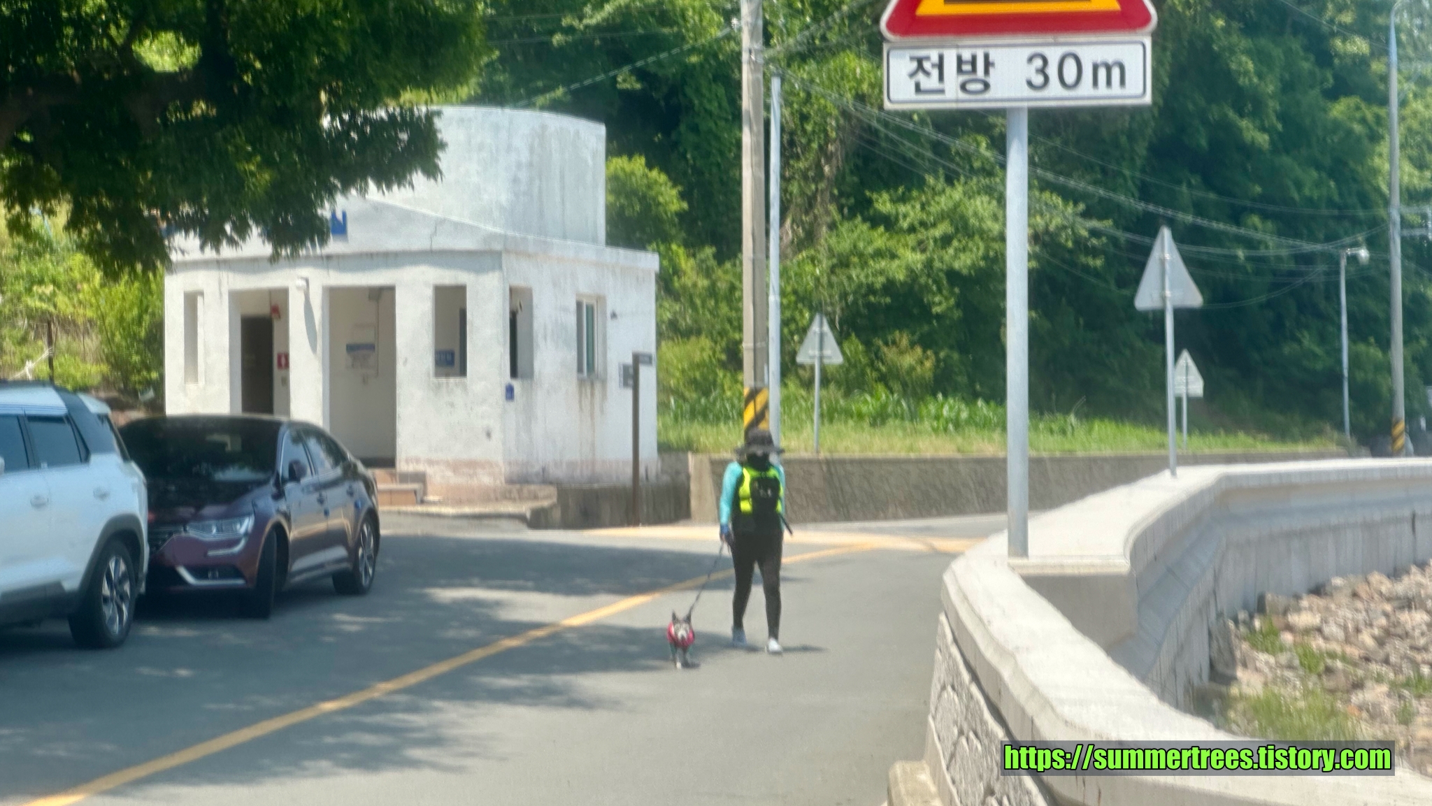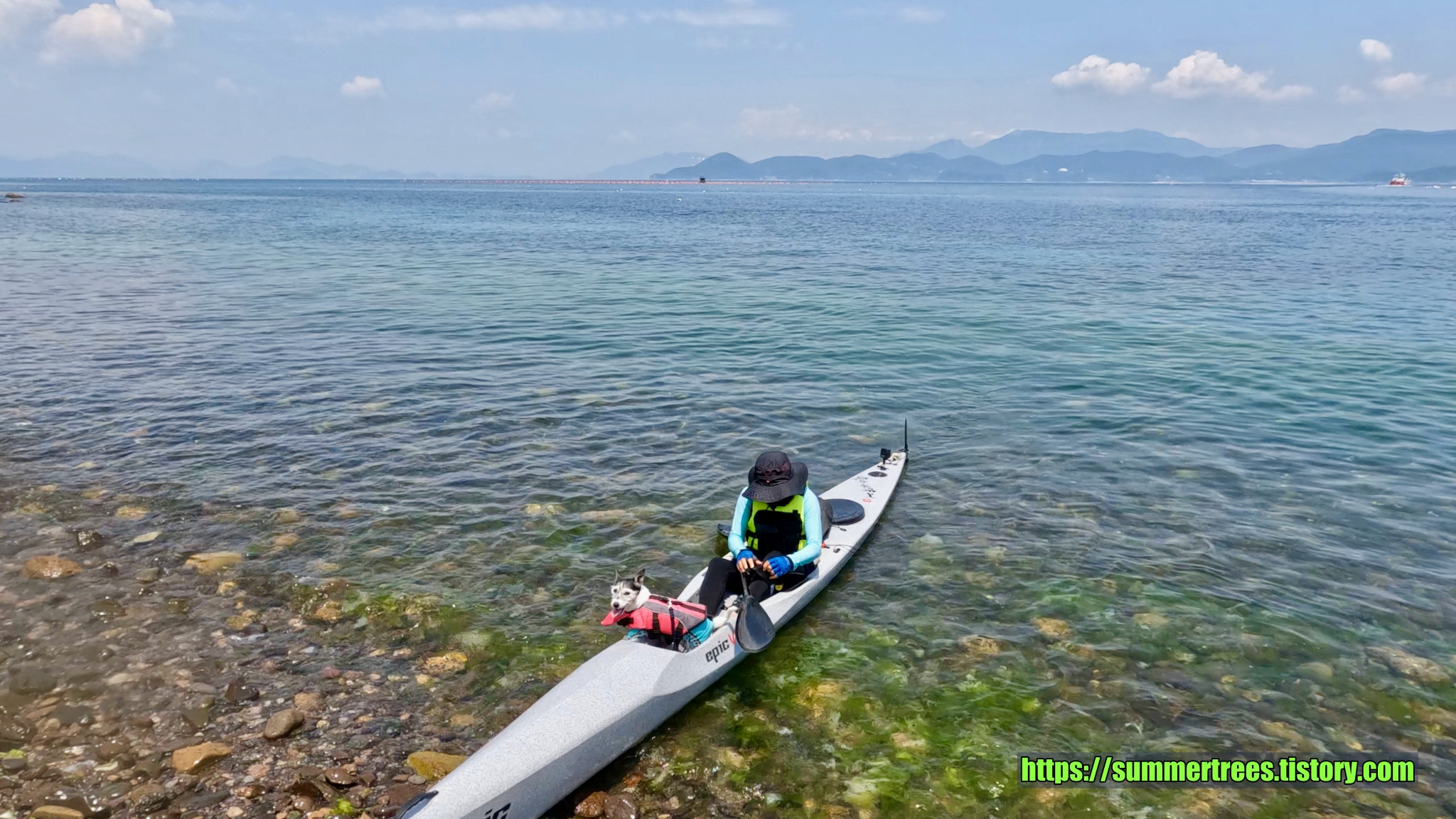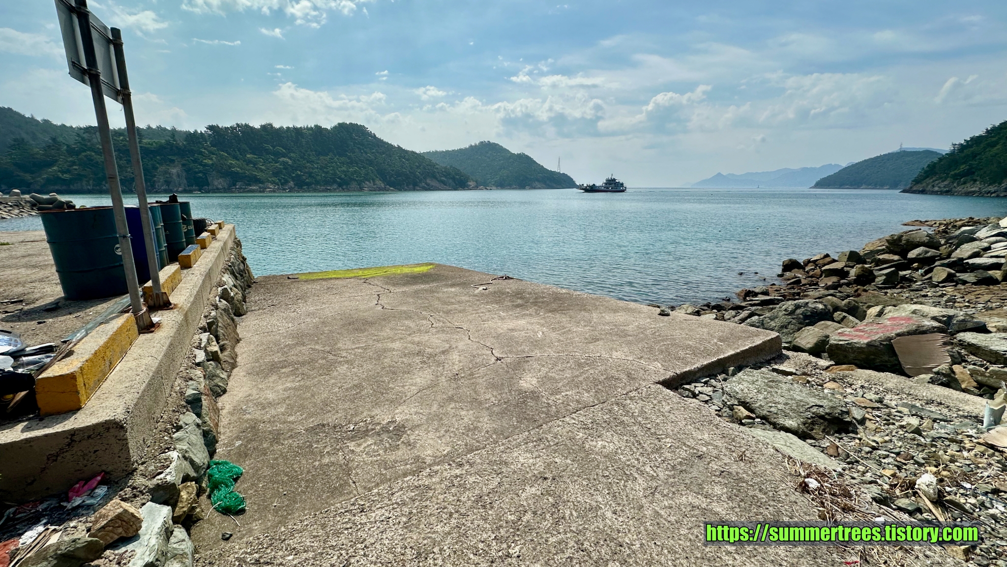 용암포에 도착하니 사량도행 카페리 때문에 입구에서 제지를 당했다. 우리는 용암포 끝에서 카약을 띄울 것이라 하니 들여보내줬는데 차 한대라서 가능했을거라 생각됐다. 만일 동호회 차원에서 여러 대가 방문했다면 이곳에서 배를 띄우는 것은 힘들겠다. 다른 카약팀이 왜 더 먼 동화마을에서 출발했는지 이해가 됐다.