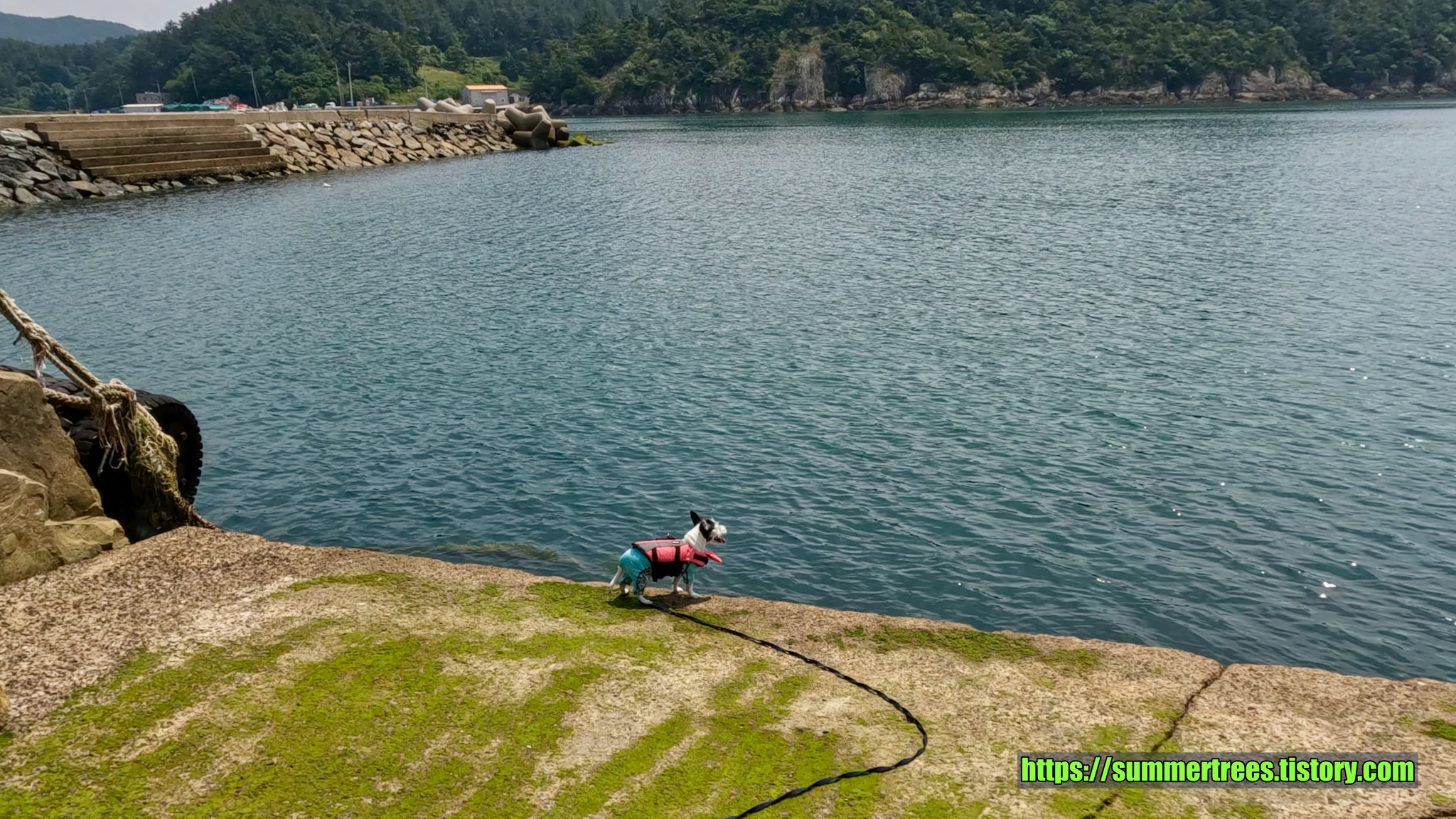 내지항부터 수우도를 구경하는 코스가 10 km 정도이기 때문에 내지항에서 잠시 쉬었다. 마야 때문에 한번에 긴 코스는 무리다. 마야는 여기서 볼일도 봐야 한다.