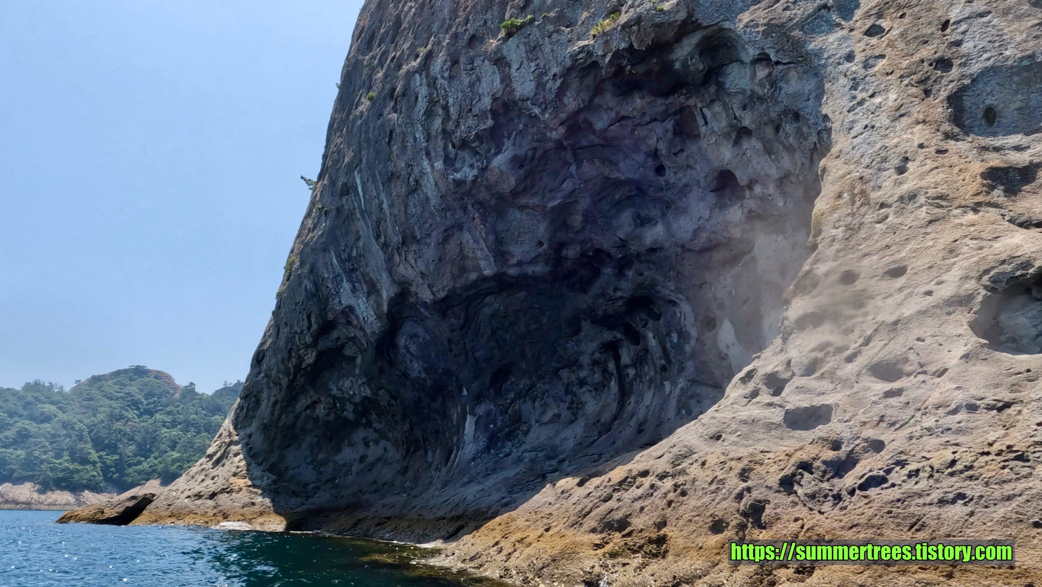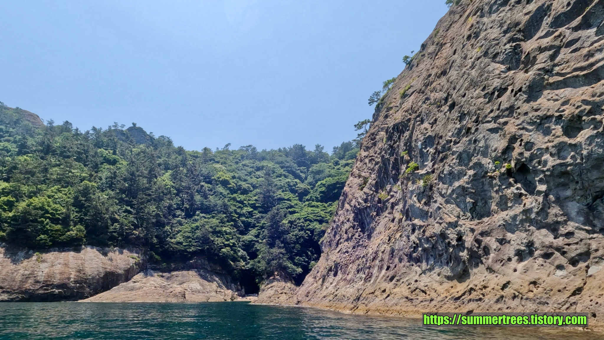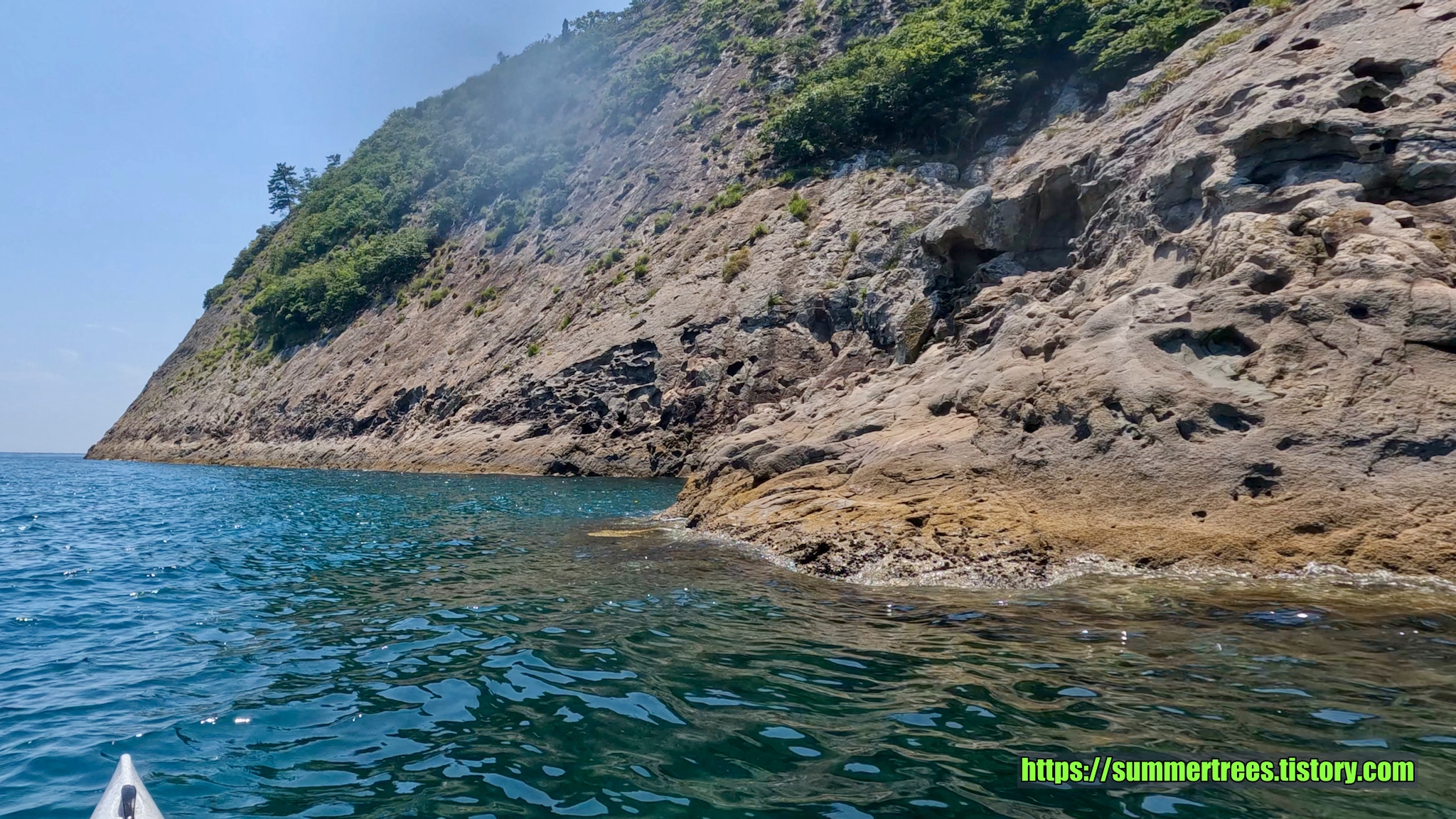 오른쪽 바위가 해골바위인데 유튜브에서 본 유명한 굴이 아래에선 보이지 않았다.