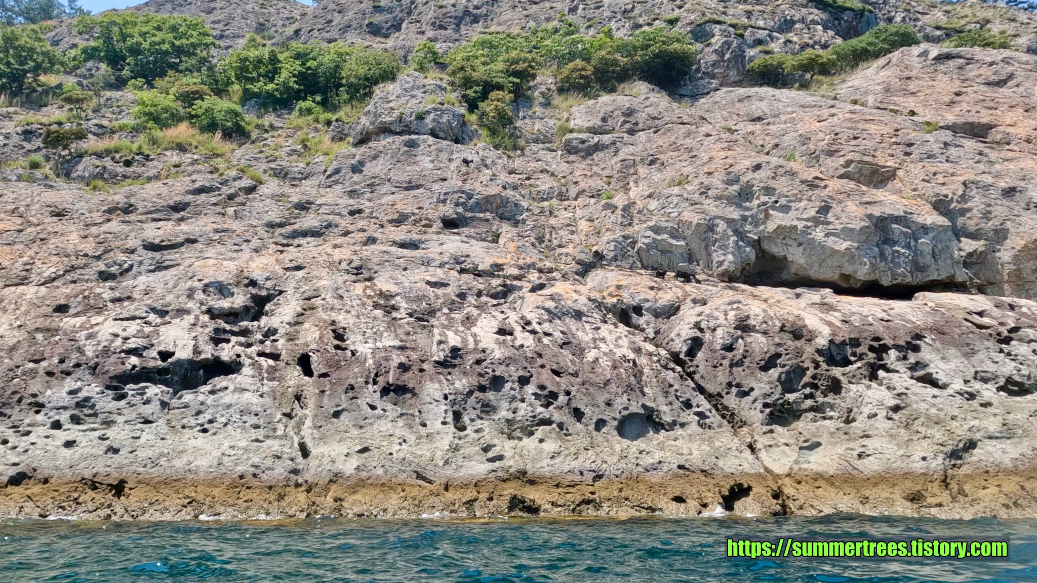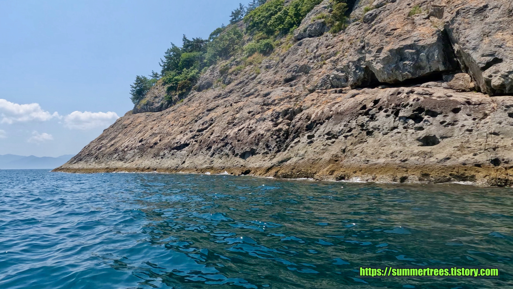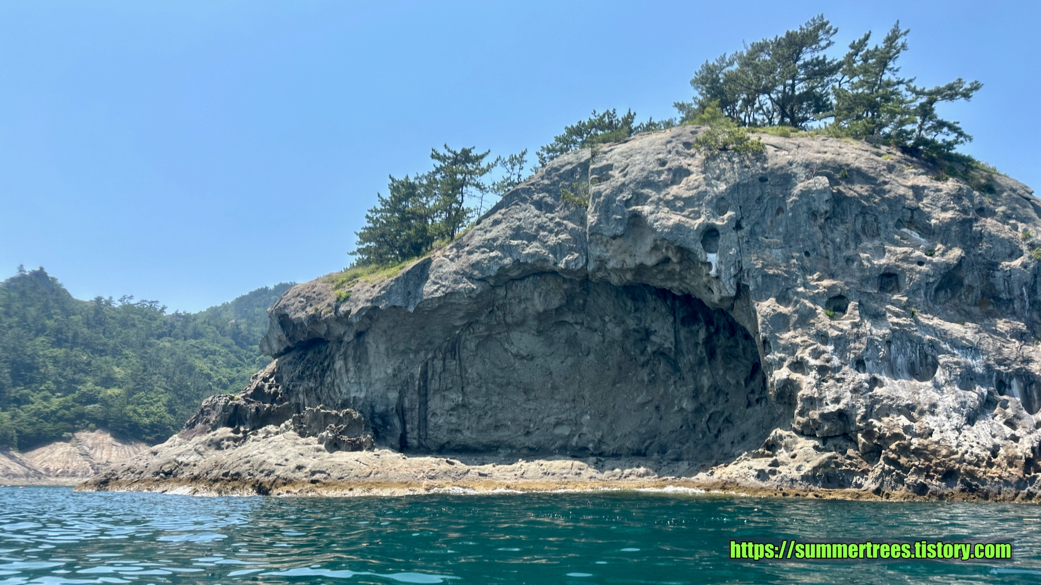 오른쪽 바위가 해골바위인데 유튜브에서 본 유명한 굴이 아래에선 보이지 않았다.