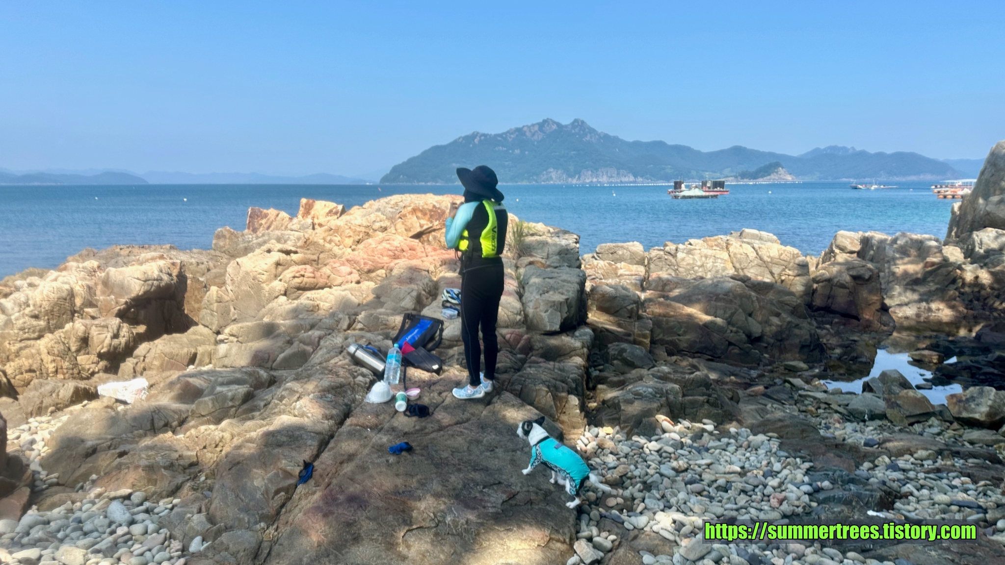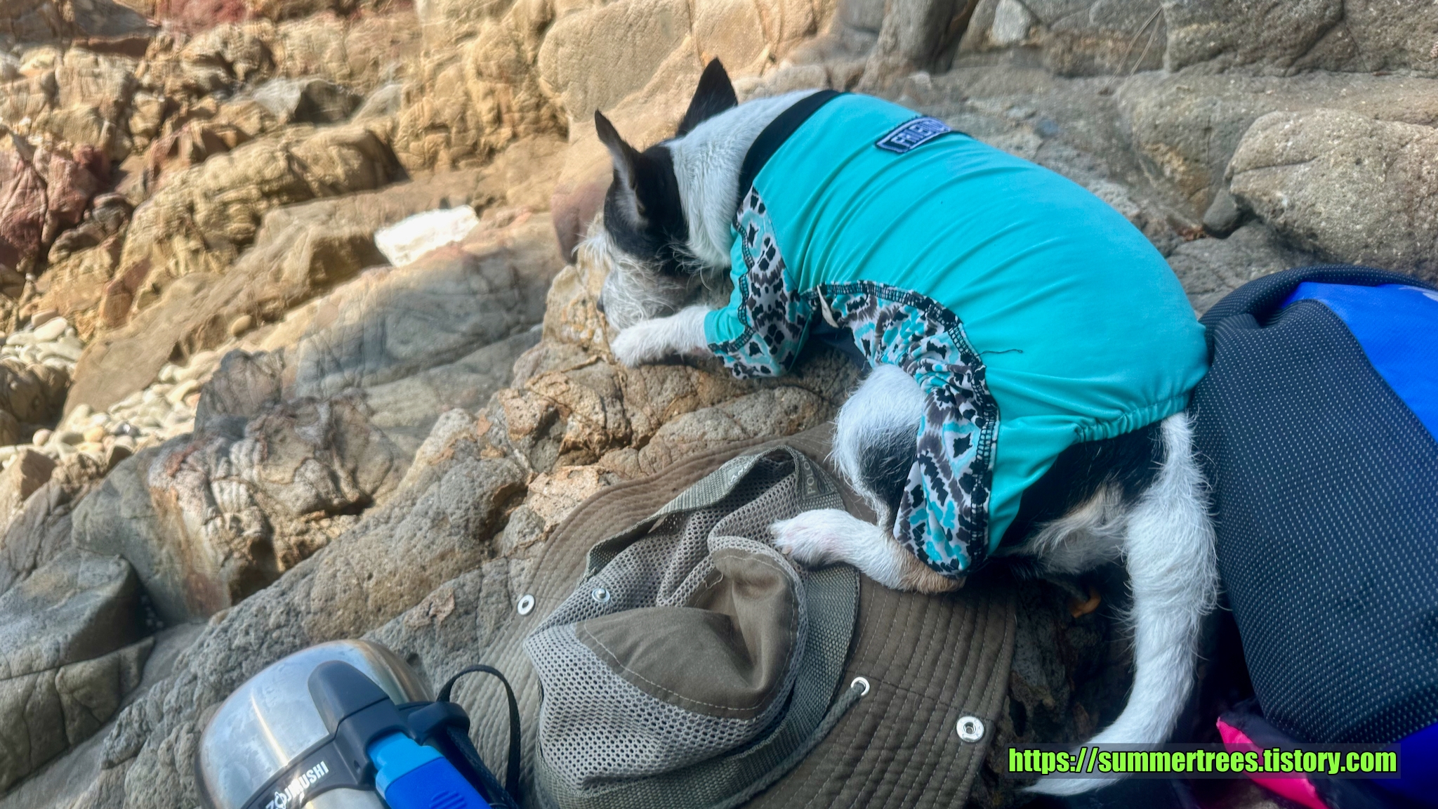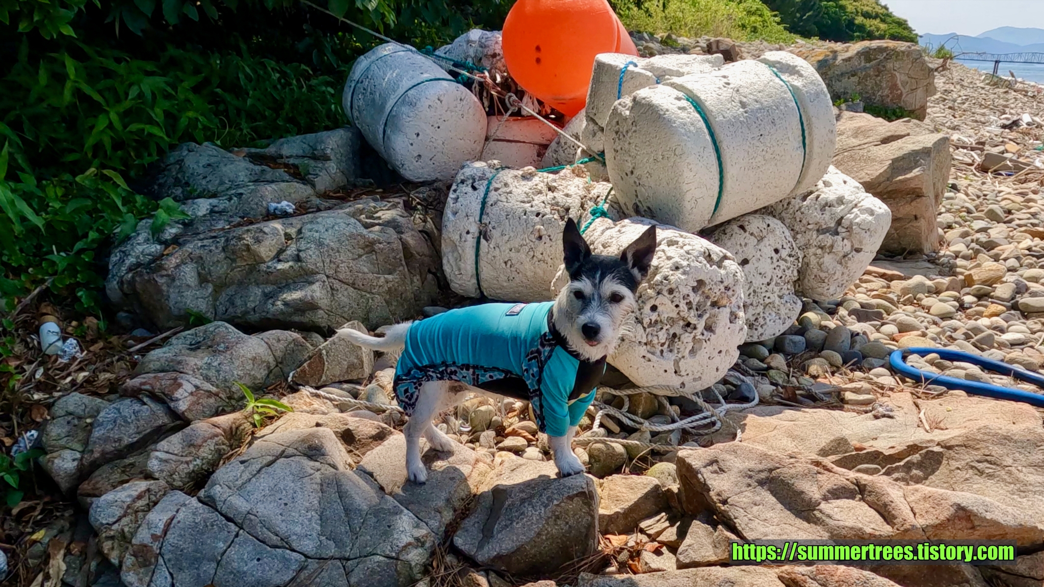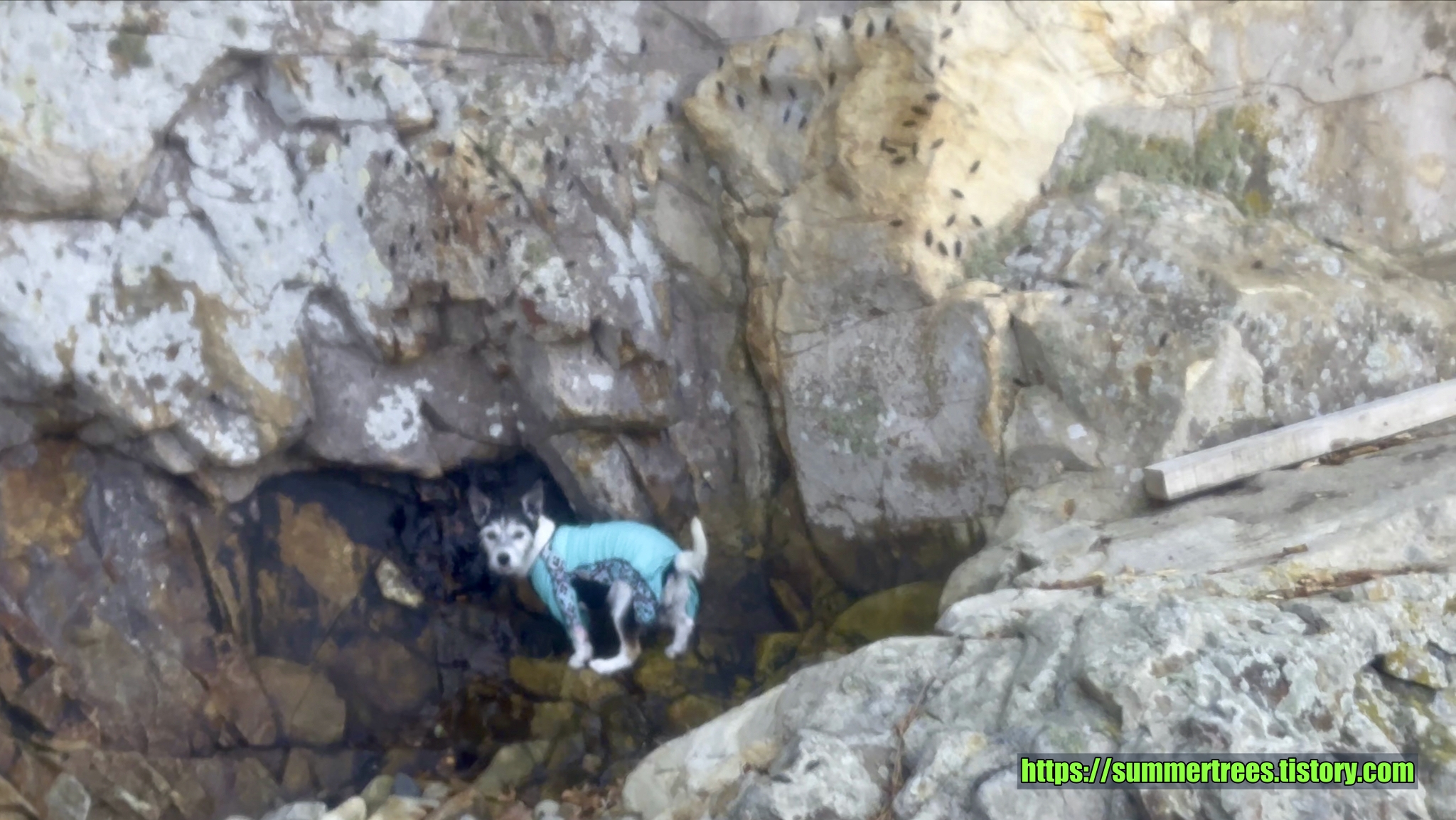 사람이 아무도 없는 해변이라 마야를 풀어놨는데 갯강구 잡으려고 자꾸 숲으로 들어가서 다시 줄을 묶어야 했다.