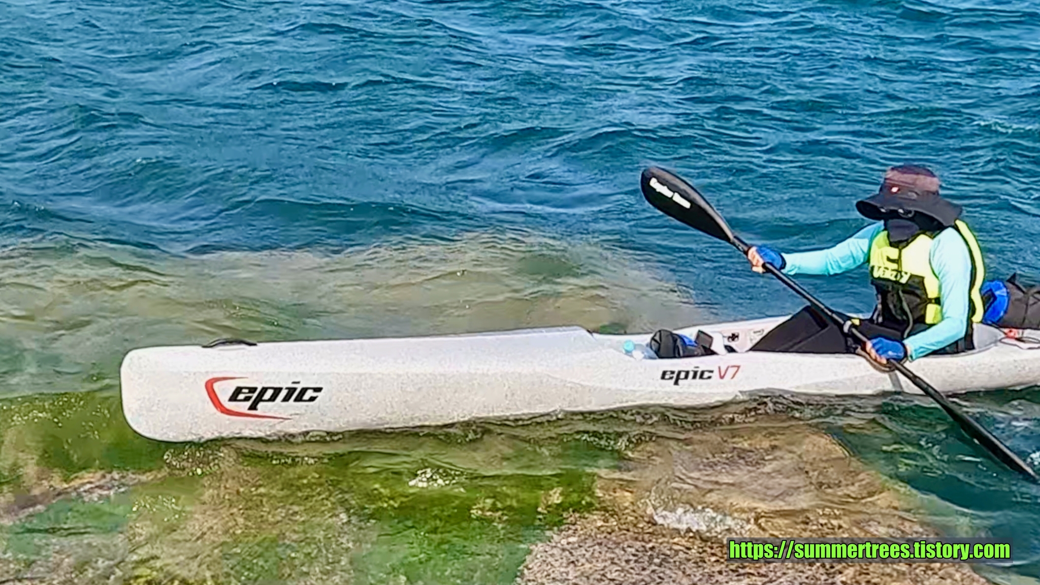 젓다가 드는 생각이 이 조류와 바람을 즐기지 않는게 아쉬울 것 같아 조류타기를 몇번 즐겼다. 조류 덕분에 최대 속도 17 km 달성.