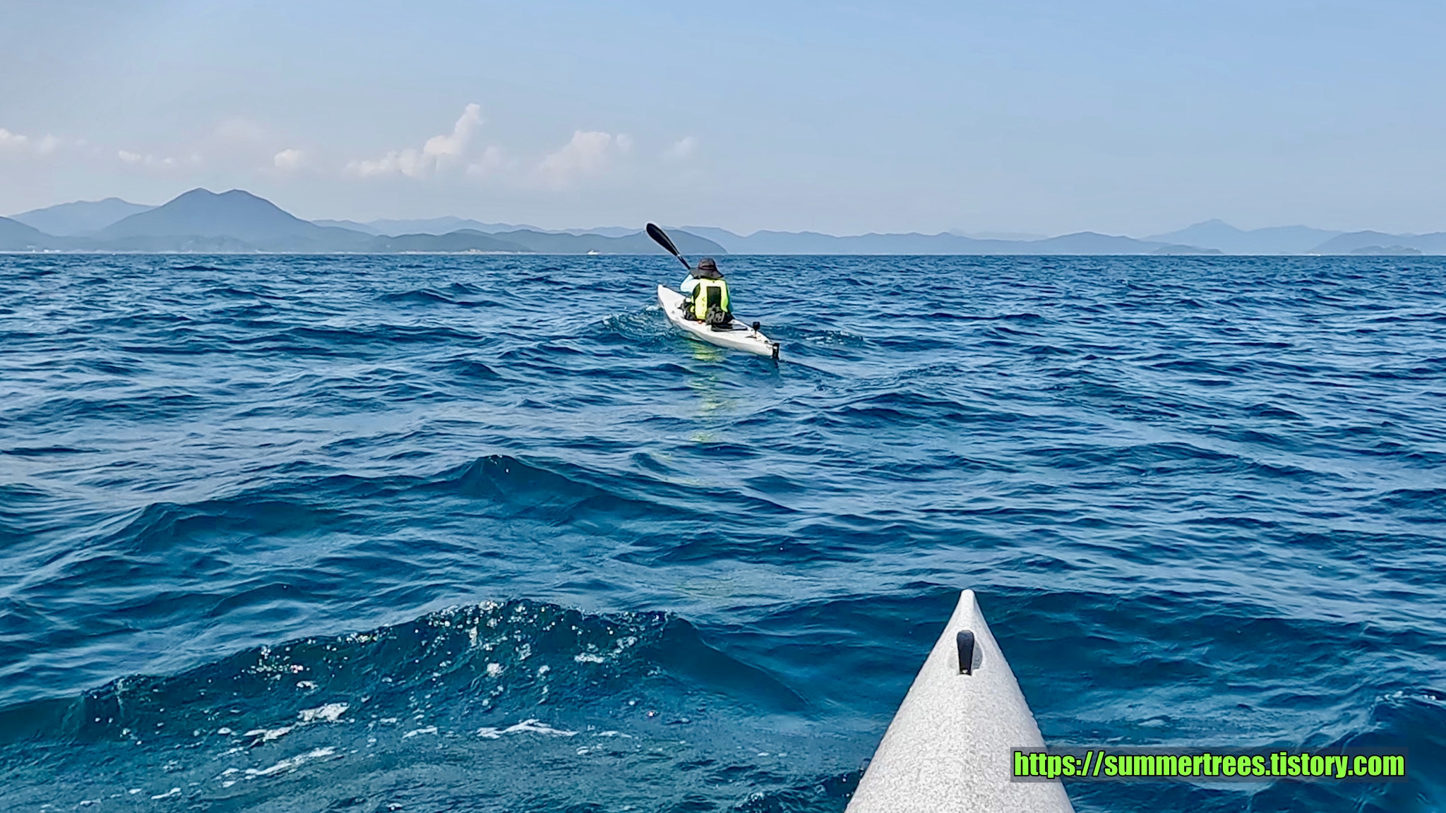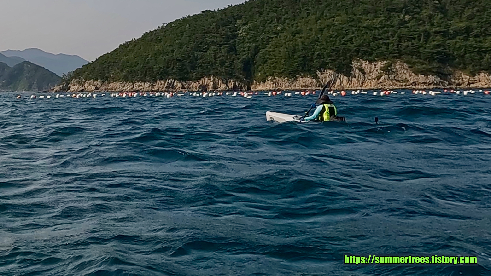 우리는 그간 투어를 다니면서 거의 대부분 잔잔한 바다를 겪었다. 하지만 이번 투어의 파도는 우리가 겪은 가장 큰 파도였다. 진해에서 한번 거센 바람을 만나긴 했지만 이번처럼 강한 조류와 바람을 함께 만나본 적이 없다. 다행히도 정방향이라 큰 문제없이 투어를 끝낼 수 있었지만 이게 역방향이었다면 난감한 상황이 될 뻔 했다.