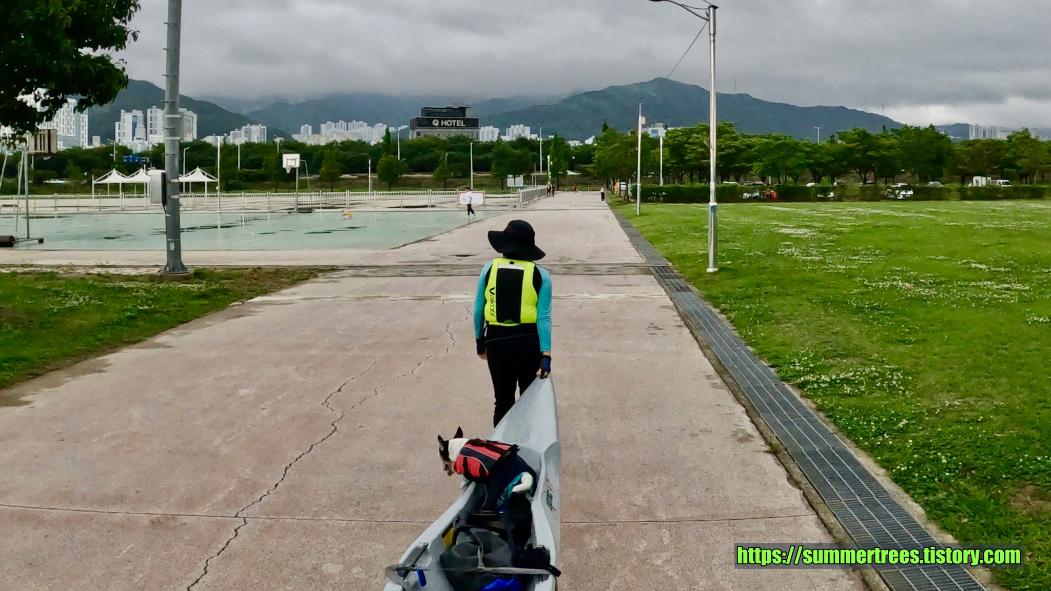 삼락공원은 런칭지와 주차장이 가깝고 포장된 길이라 카약을 타기에 아주 쾌적하다.