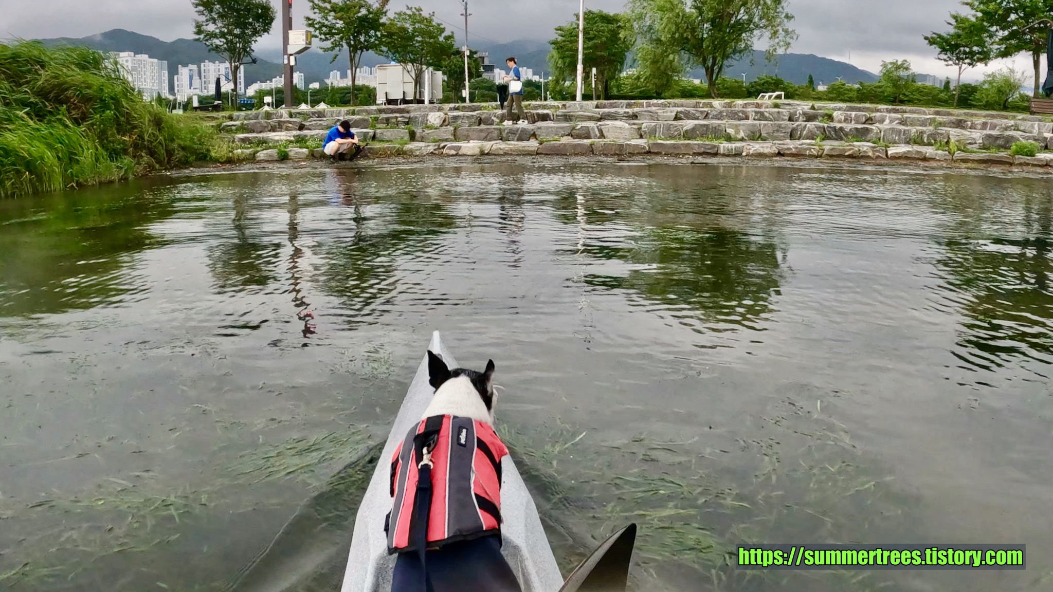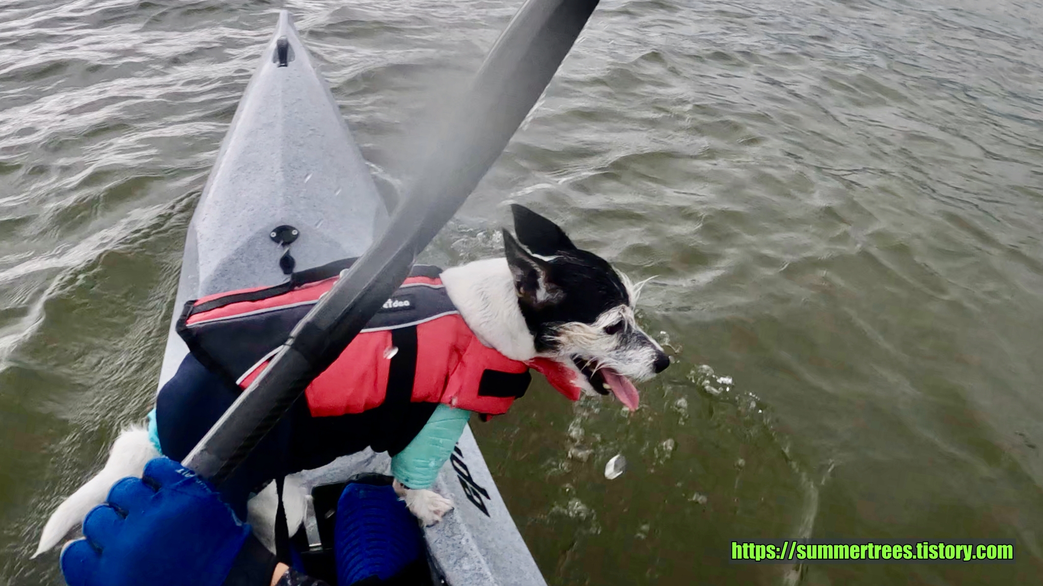 턴을 하기 전까지 물고기가 뛰어오르는 걸 여러 번 봤다. 카약을 타면서 물고기나 상괭이 등 동물을 보는 건 신나는 일이다.