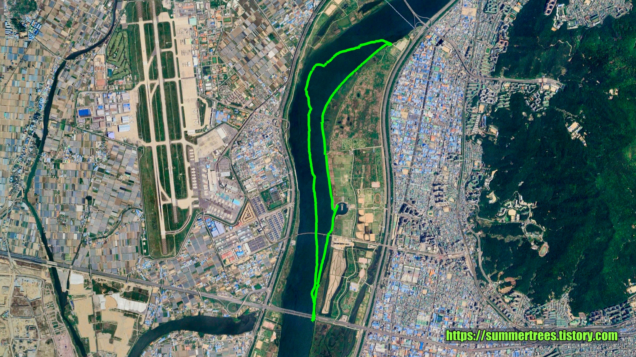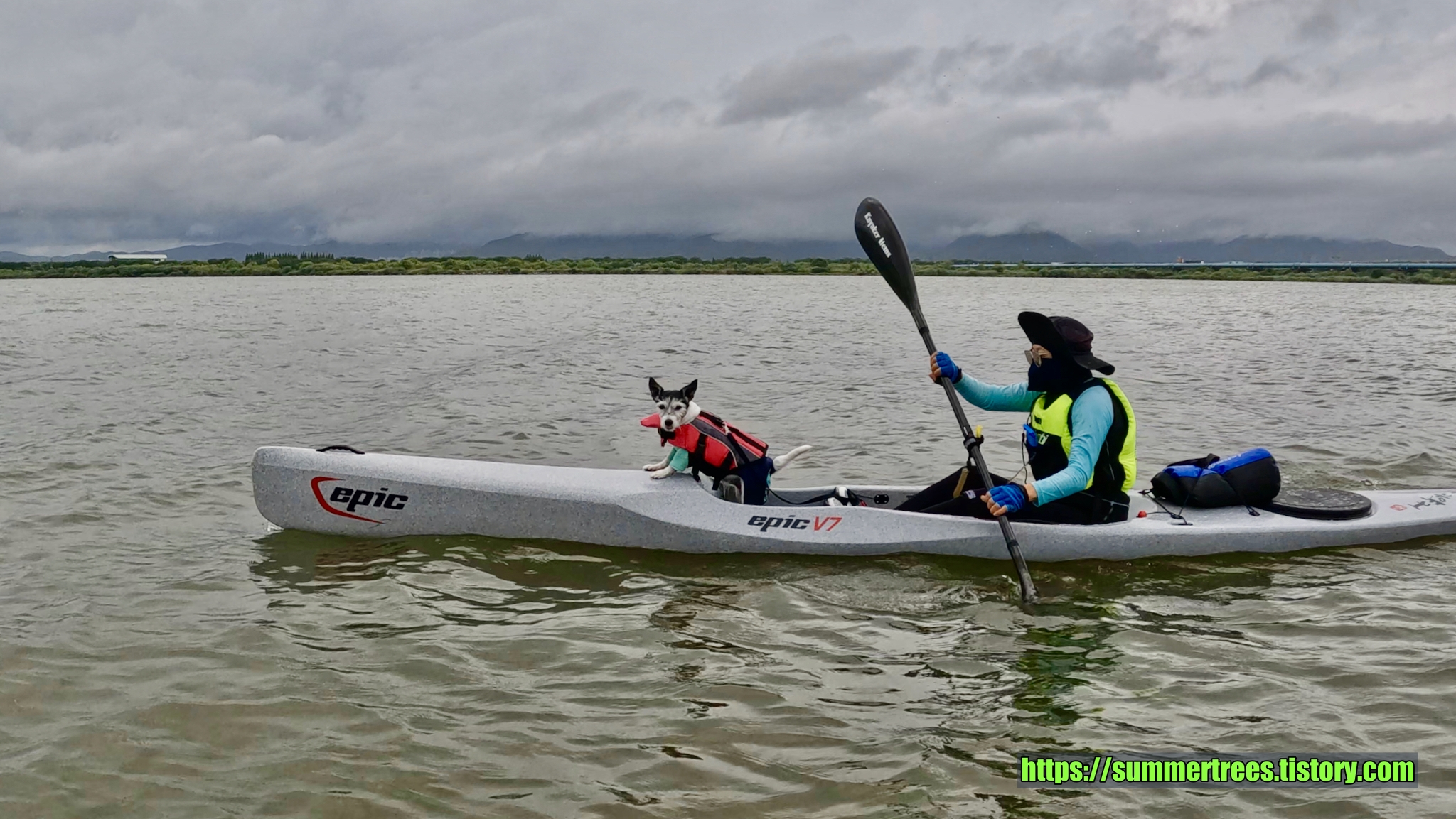 김해공항의 관제탑이 보인다. 이 날은 마야가 처음부터 조용했다. 마야가 짖지 않고 시작한 최초의 날이다. 그래도 걱정스러운지 계속 나를 확인하다 내가 뒤에서 뭐라 소리치니까 뭔 문제가 생긴 줄 알고 짖기 시작했다. 서핑을 시작할 때는 위험해 보이는지 계속 짖었다.