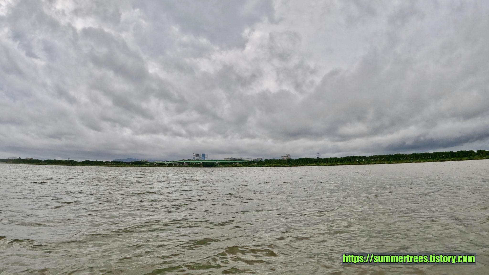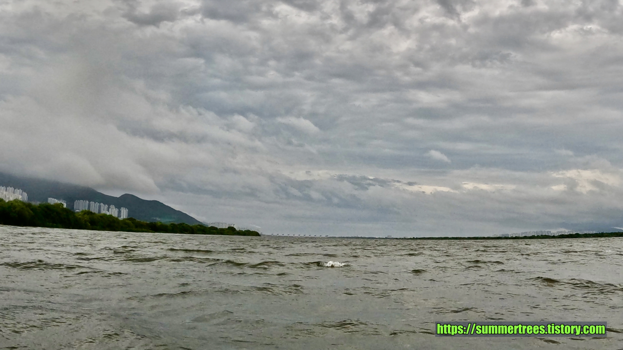 강 주변보다는 가운데의 파도와 바람이 더 세고, 카페 사람들에 의하면 하구둑 부근의 바람이 가장 세다고 한다.