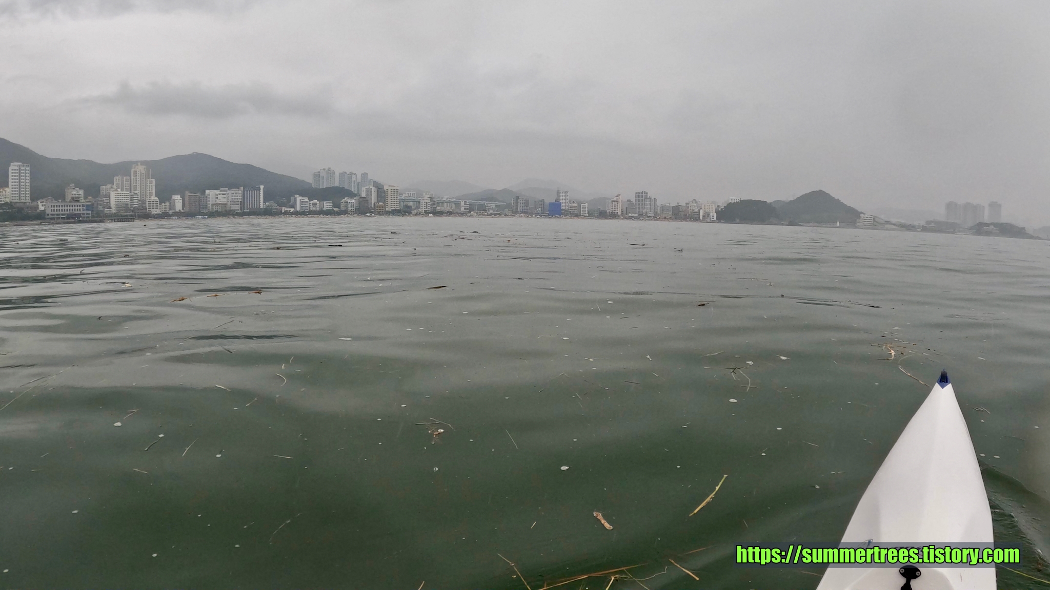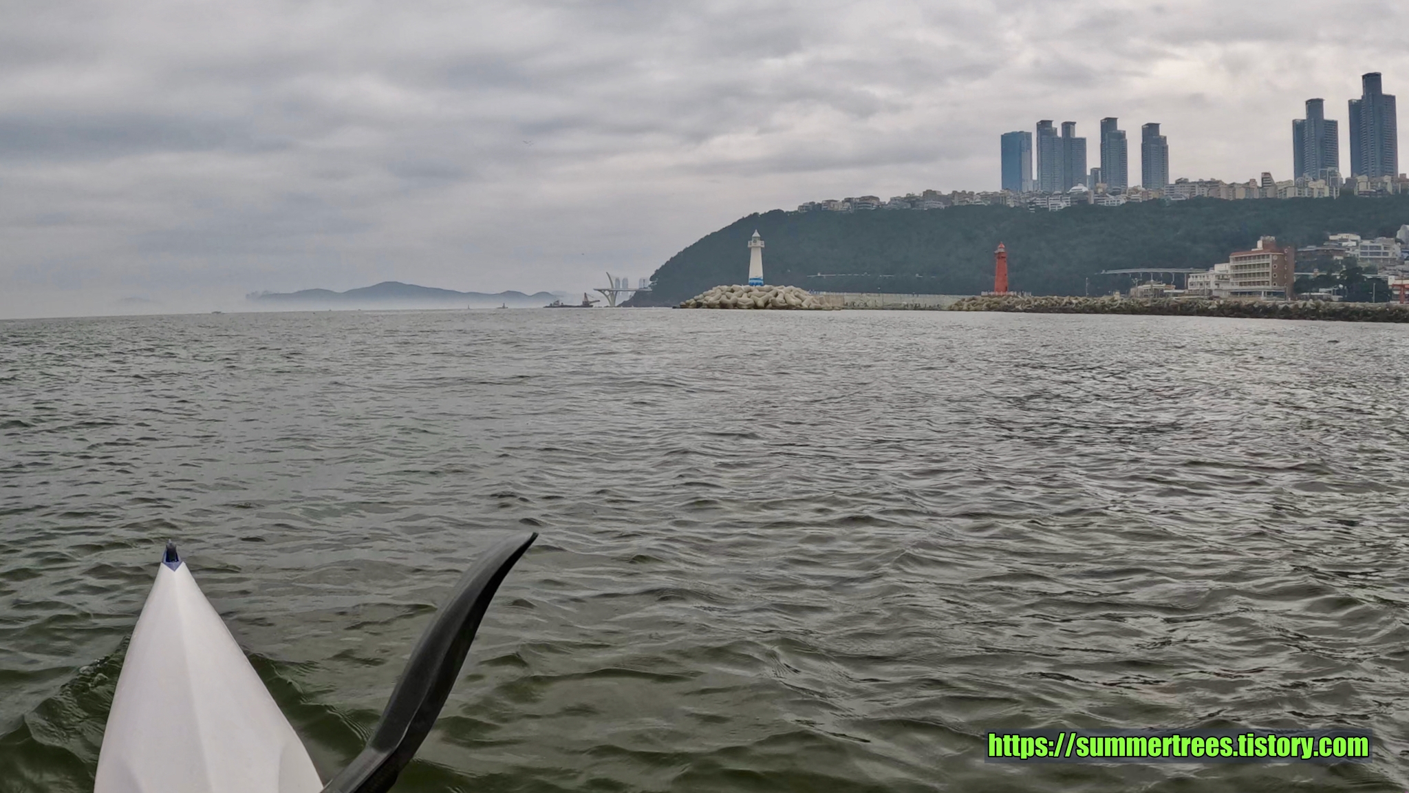 해운대 가는 길과 조류의 방향이 맞아 서핑을 시도했는데 잘 되지 않았다. 탈 수 있는 파도는 아닌 것 같았는데 대신 조류 덕분에 빠르게 갈 수는 있었다.