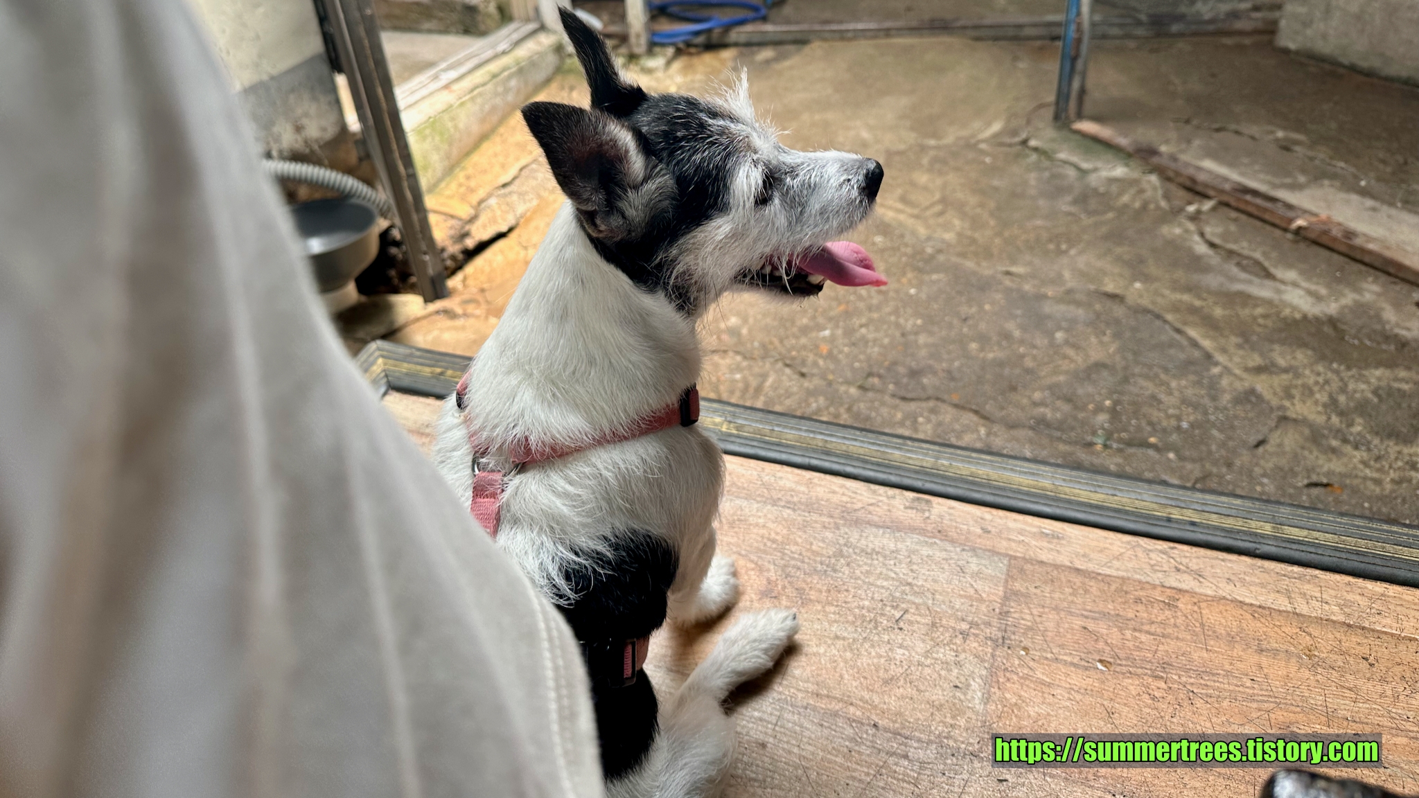 바깥 자리가 많아 강아지와 같이 먹을 수 있는 것은 좋았다. 더운 날씨에 마야를 차에 두기 꺼렸는데 평상에서는 같이 먹을 수 있다 해서 고마웠다. 마야도 얌전히 내 곁에서 기다려줘서 더 고마웠다.