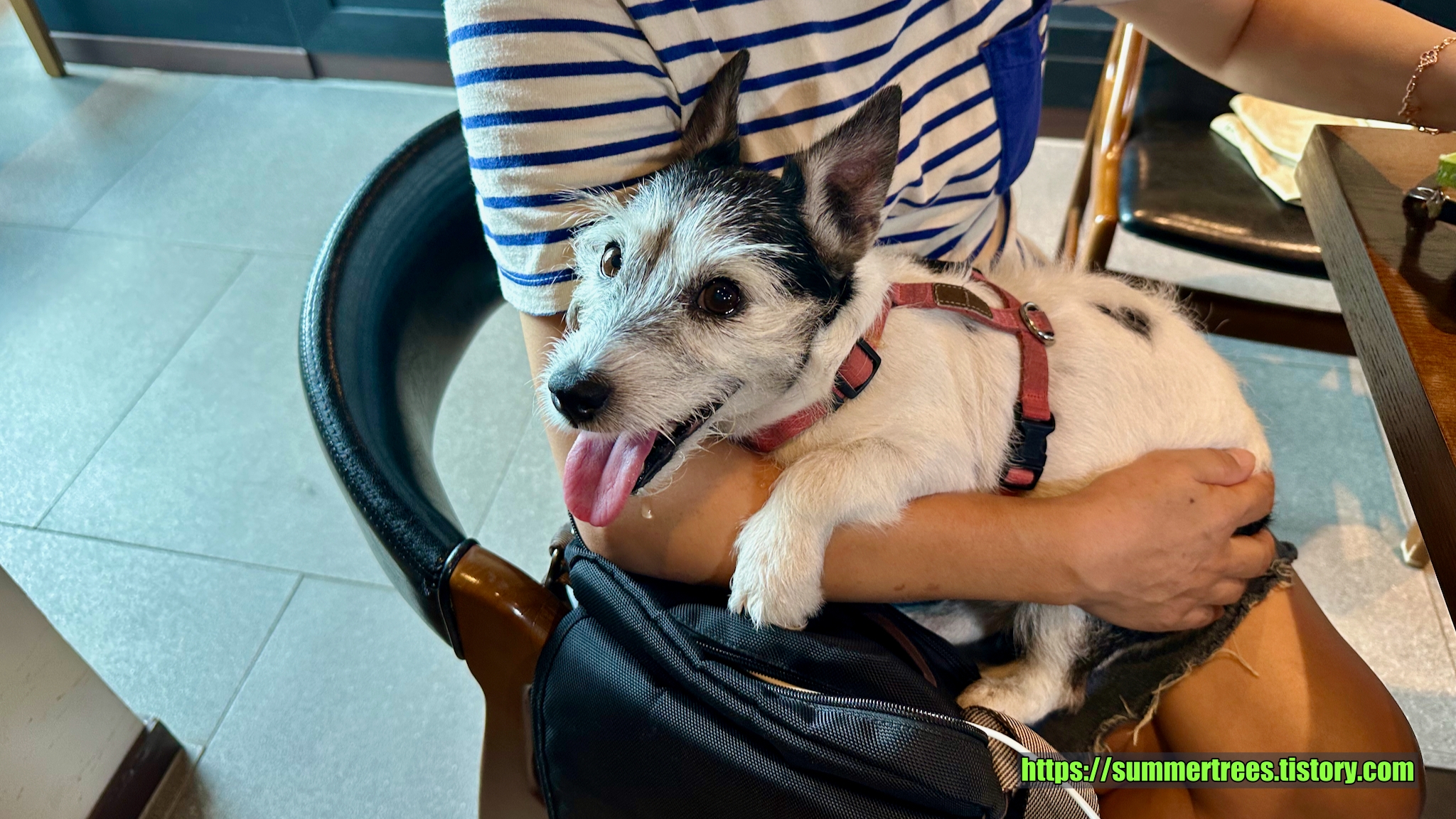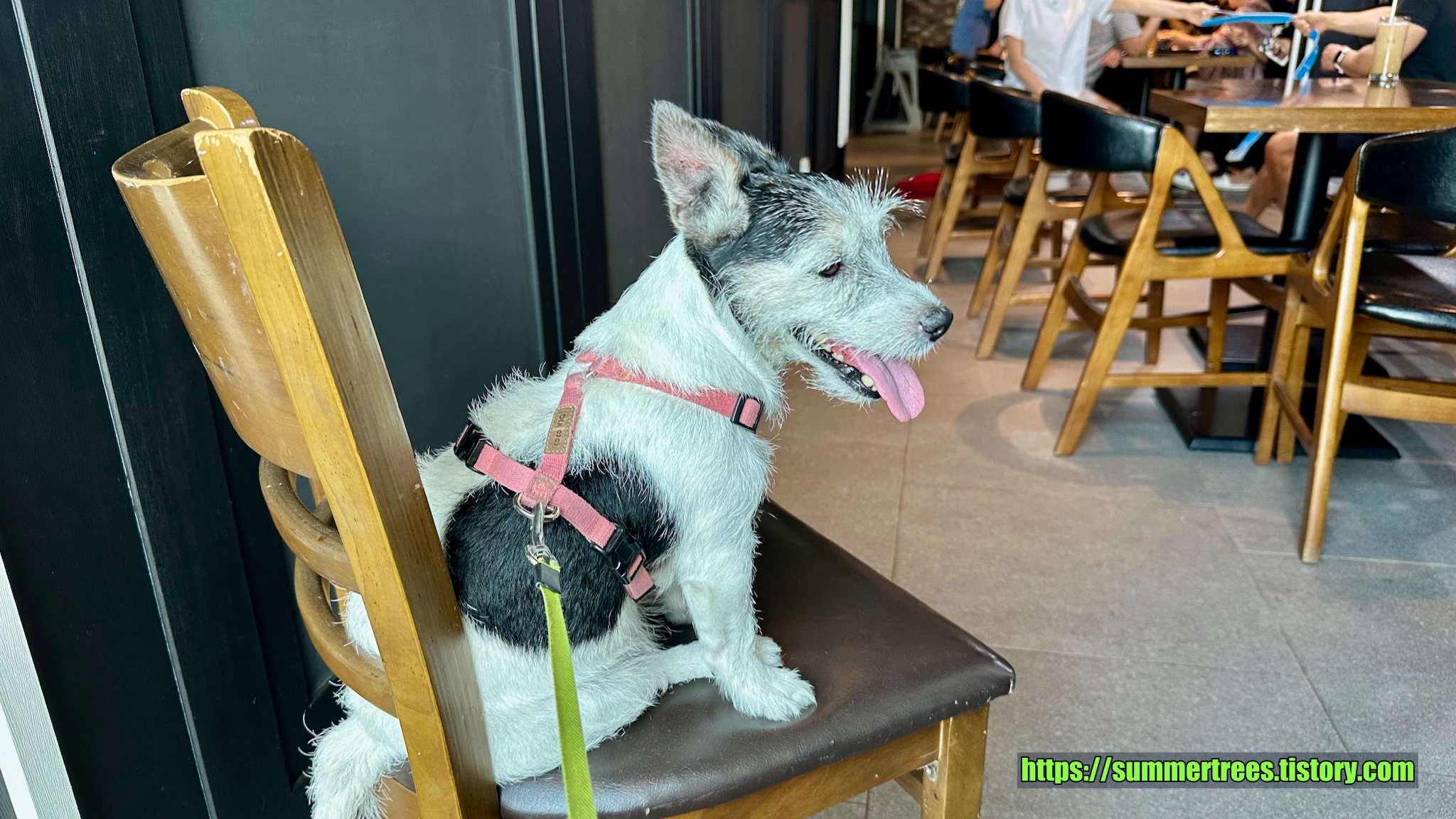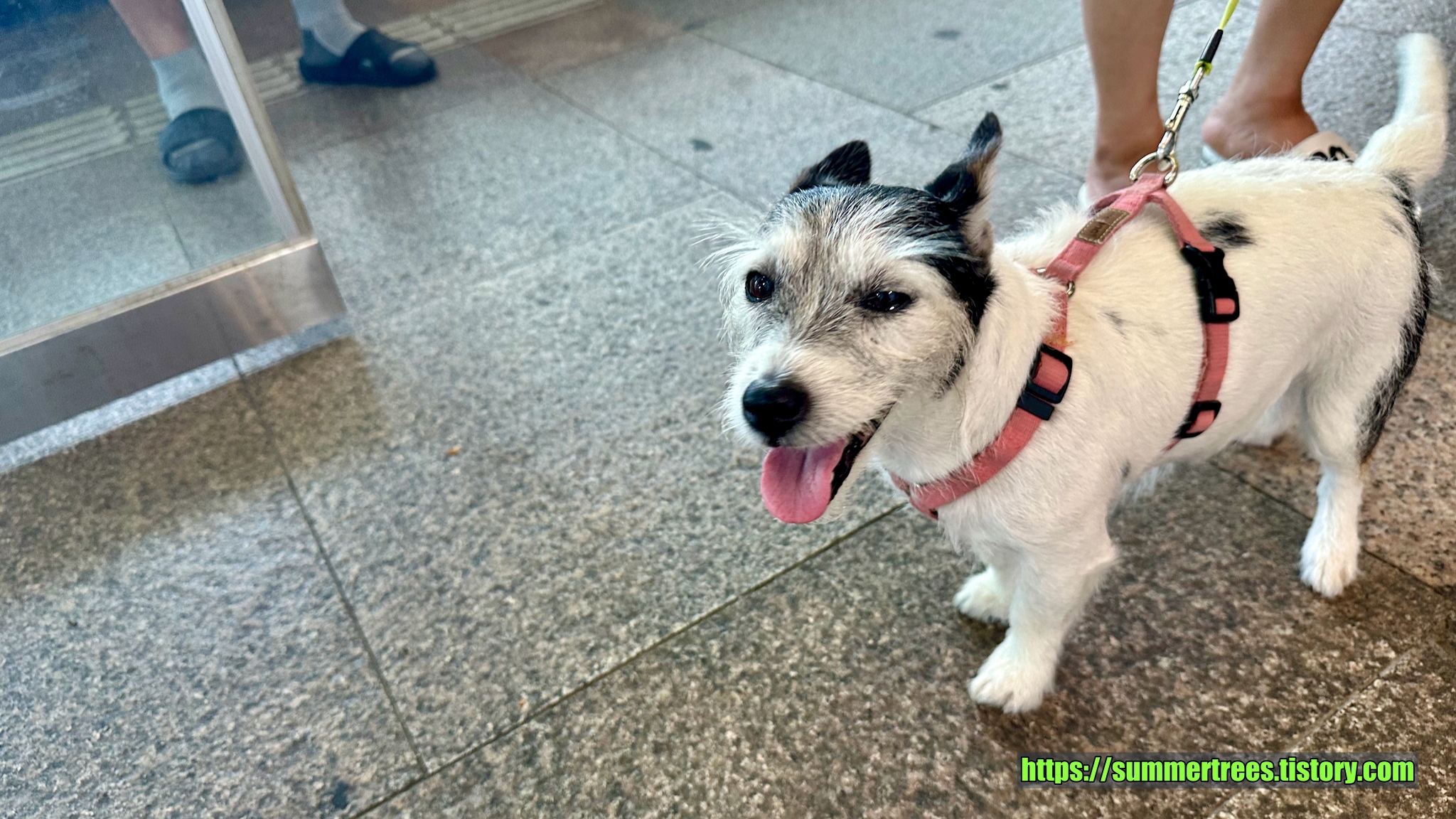 그래도 우리가 단체여서 다행히 마야도 실내 출입을 할 수 있었다. 많은 사람들 사이에서는 무서움을 타서 한 켠에서 지켜봤다. 시원하니 만족스러운 듯 했다.