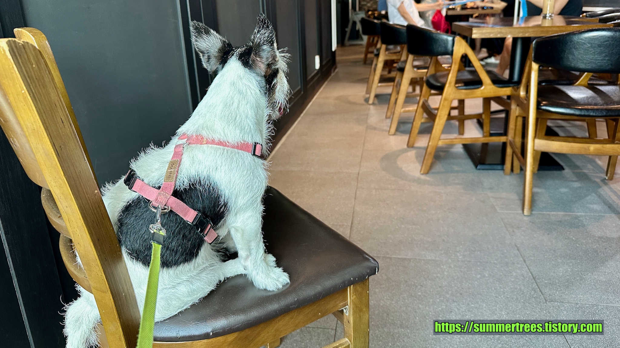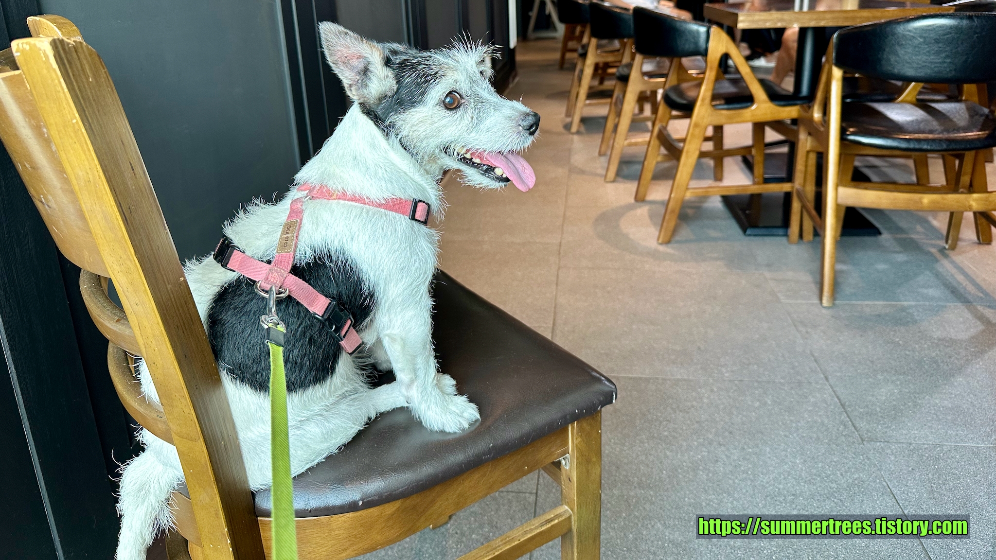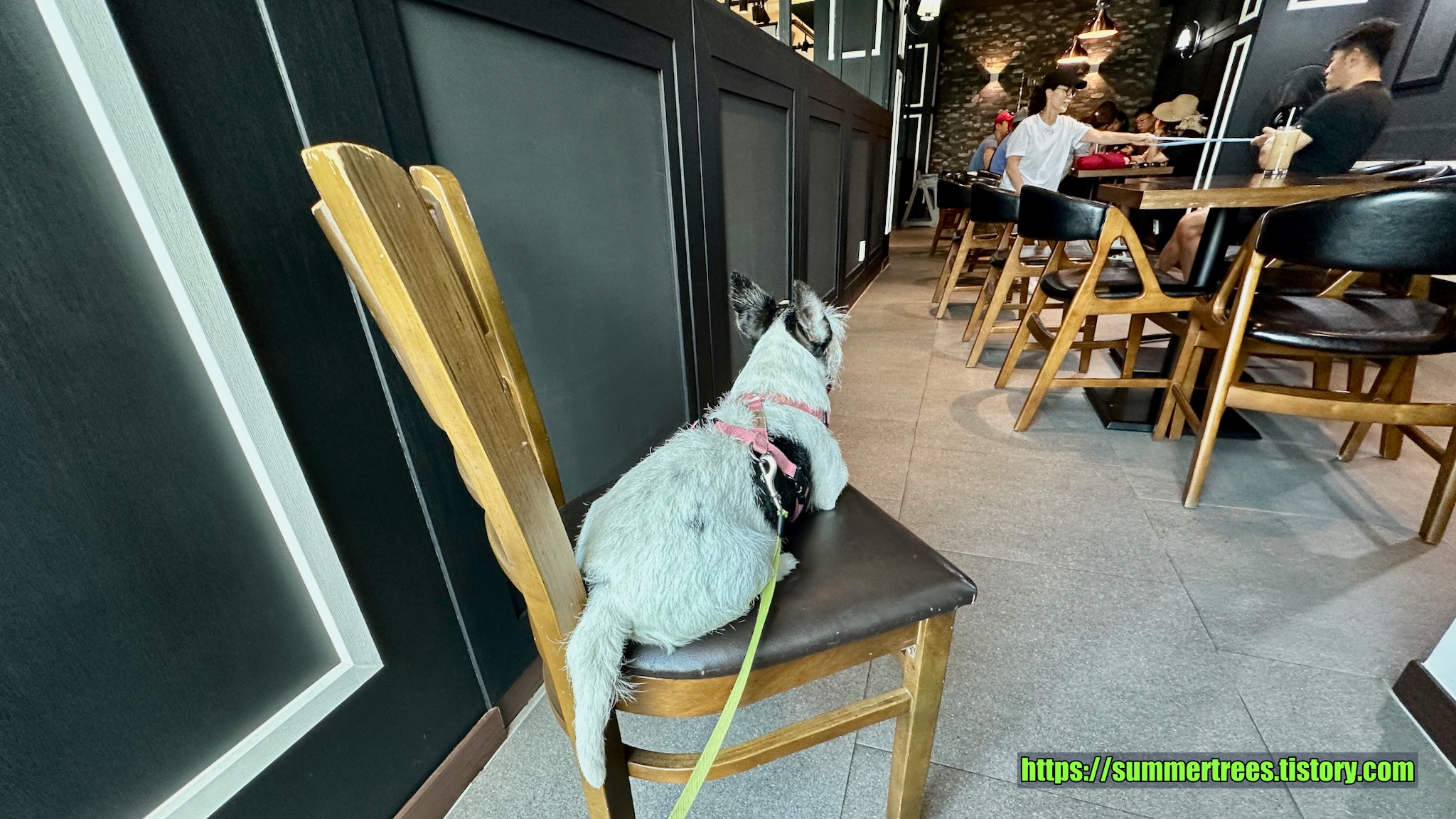 그래도 우리가 단체여서 다행히 마야도 실내 출입을 할 수 있었다. 많은 사람들 사이에서는 무서움을 타서 한 켠에서 지켜봤다. 시원하니 만족스러운 듯 했다.