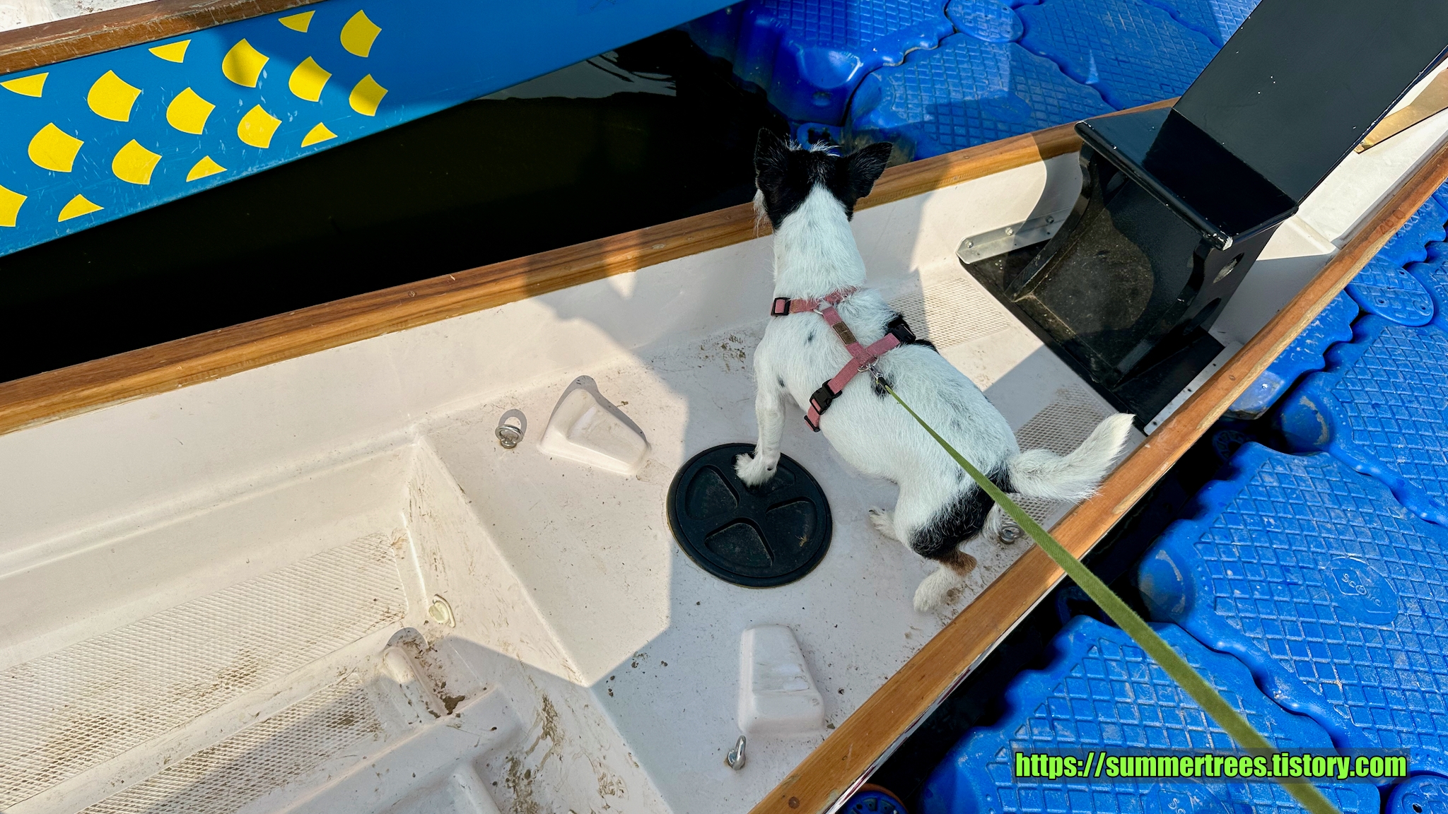 그 와중에 마야는 이제 드디어 기다리던 배를 탈 시간이라 생각했는지 배를 타려고 떼를 썼다. 이제 마야는 배를 즐긴다.