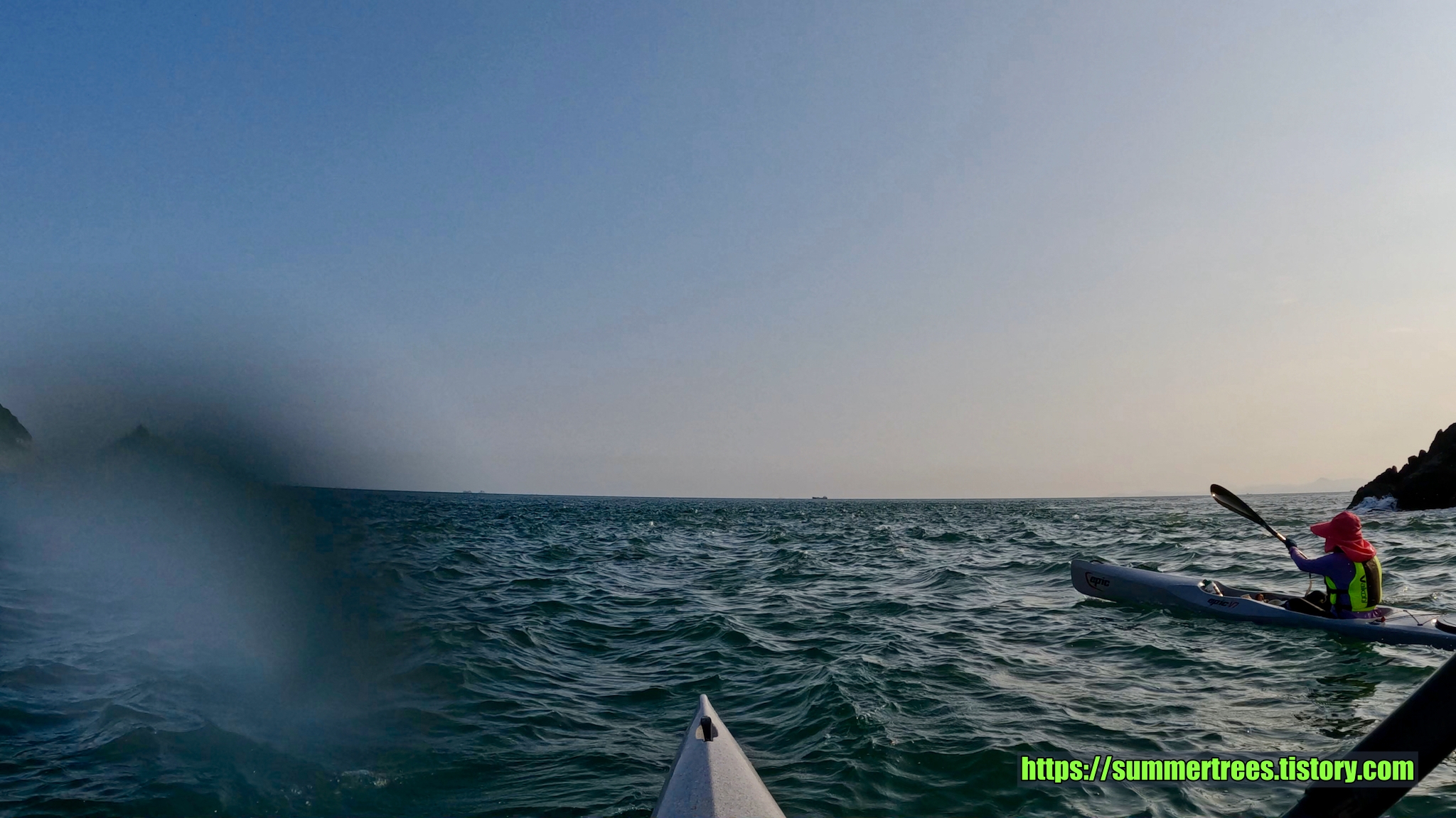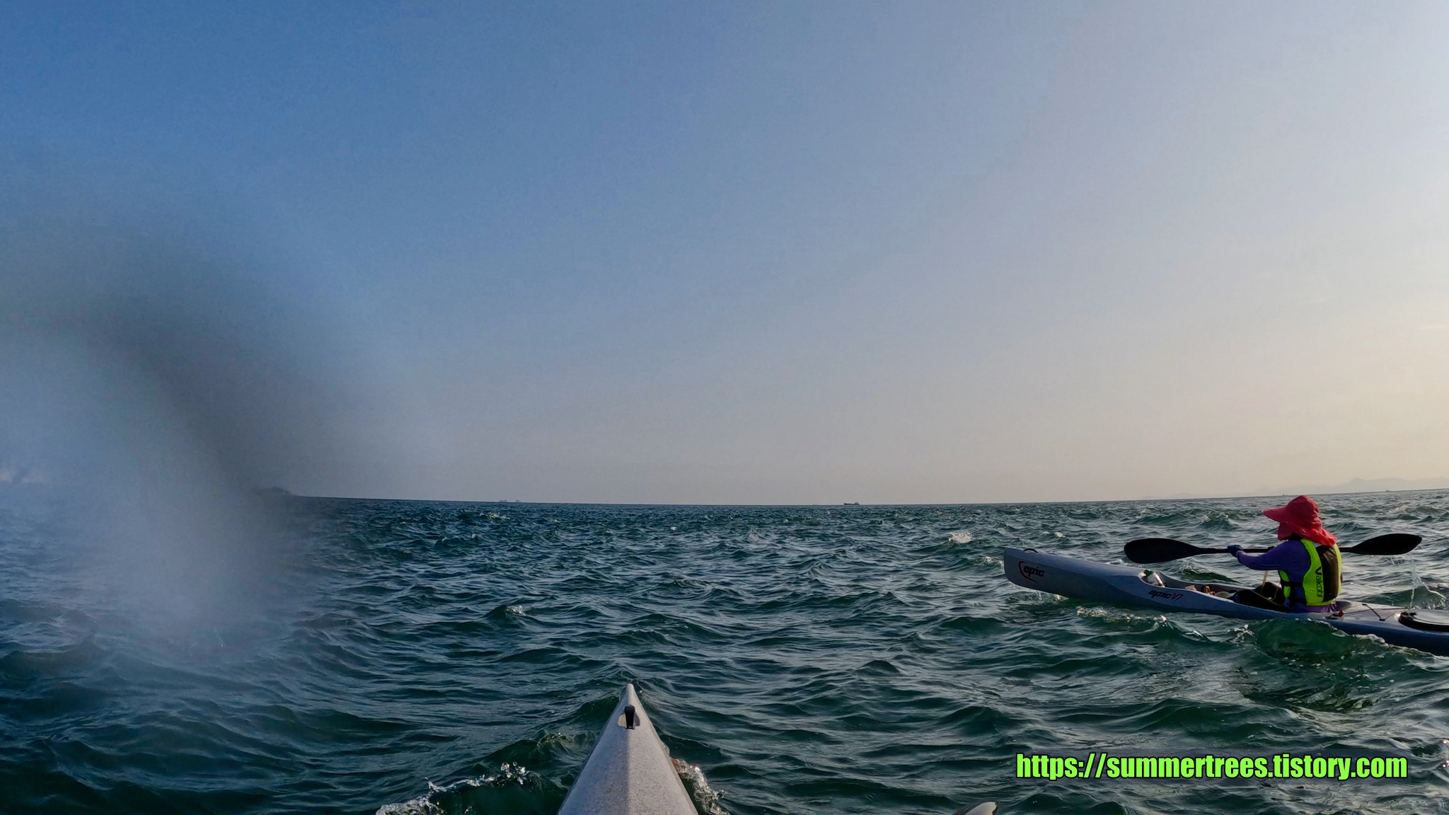 그런 와중에 조류가 동쪽으로 강하게 흐르는 것처럼 보여서 조류 타기를 시도해 봤는데 속도는 빨라졌지만 서핑처럼 타지는 못했다.