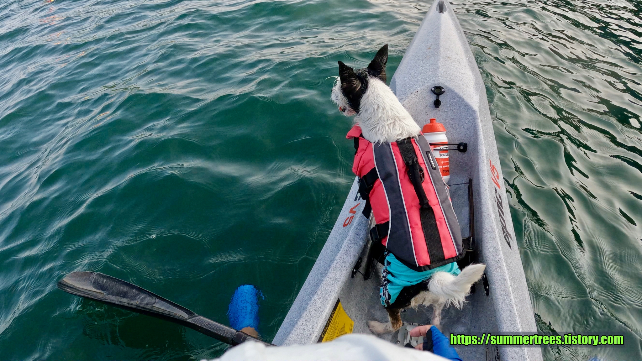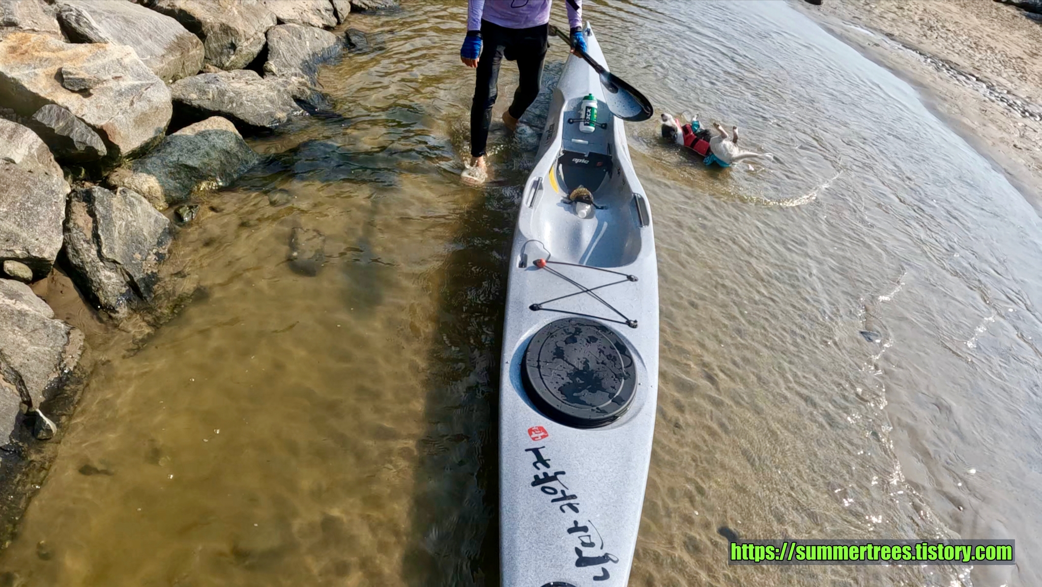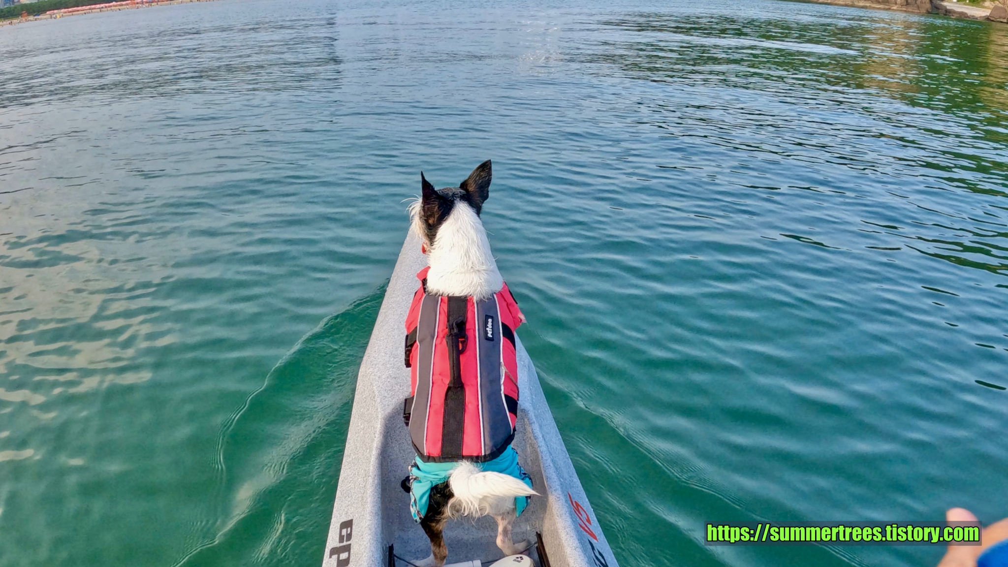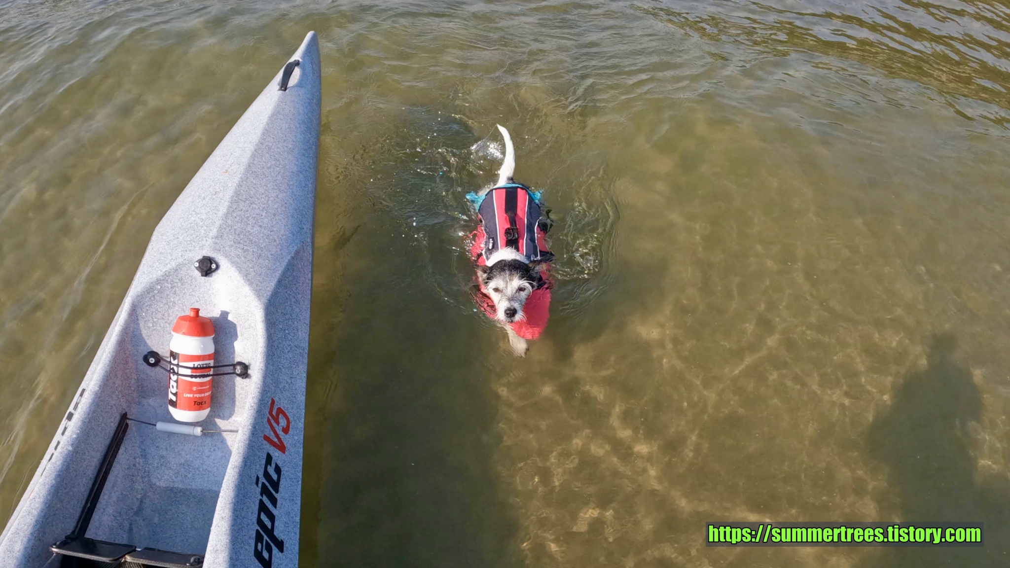 배를 내리고 준비하고 있는데 마야가 먼저 물에 뛰어든다. 마야는 어지간히도 타고 싶었나 보다.