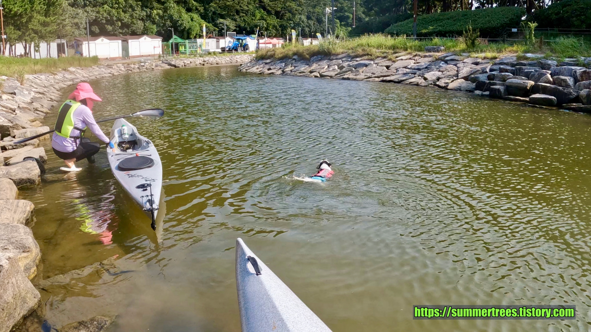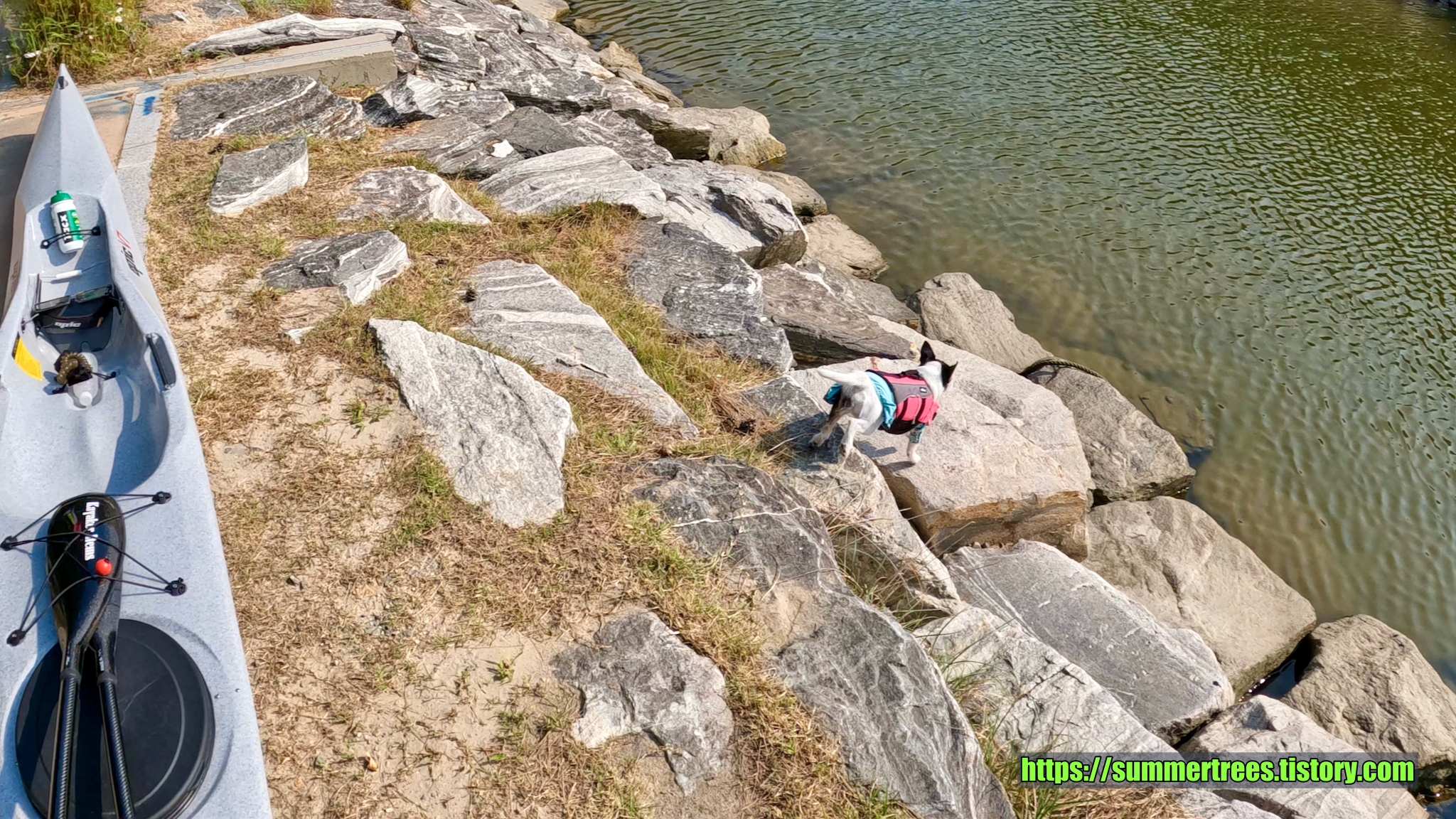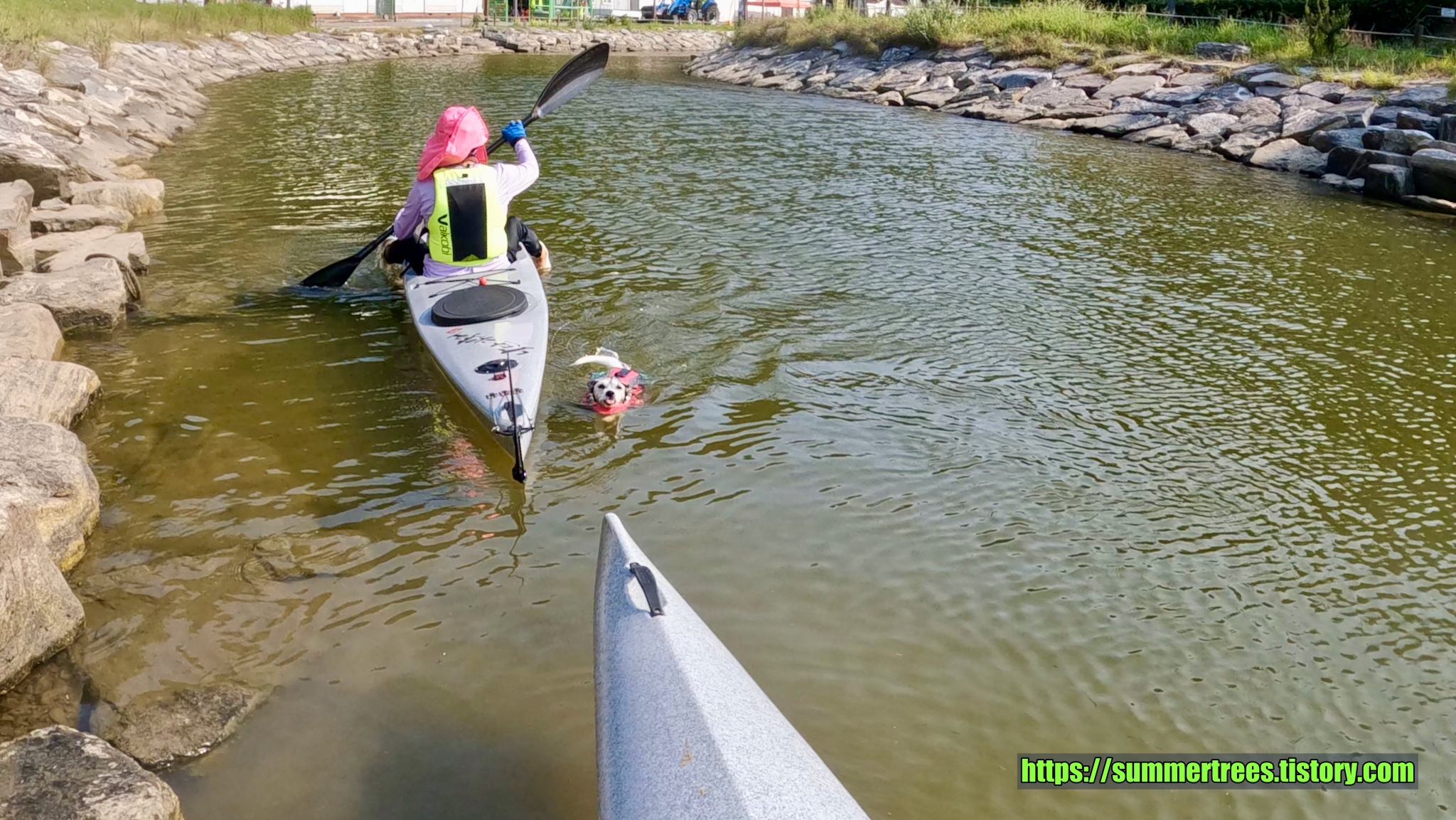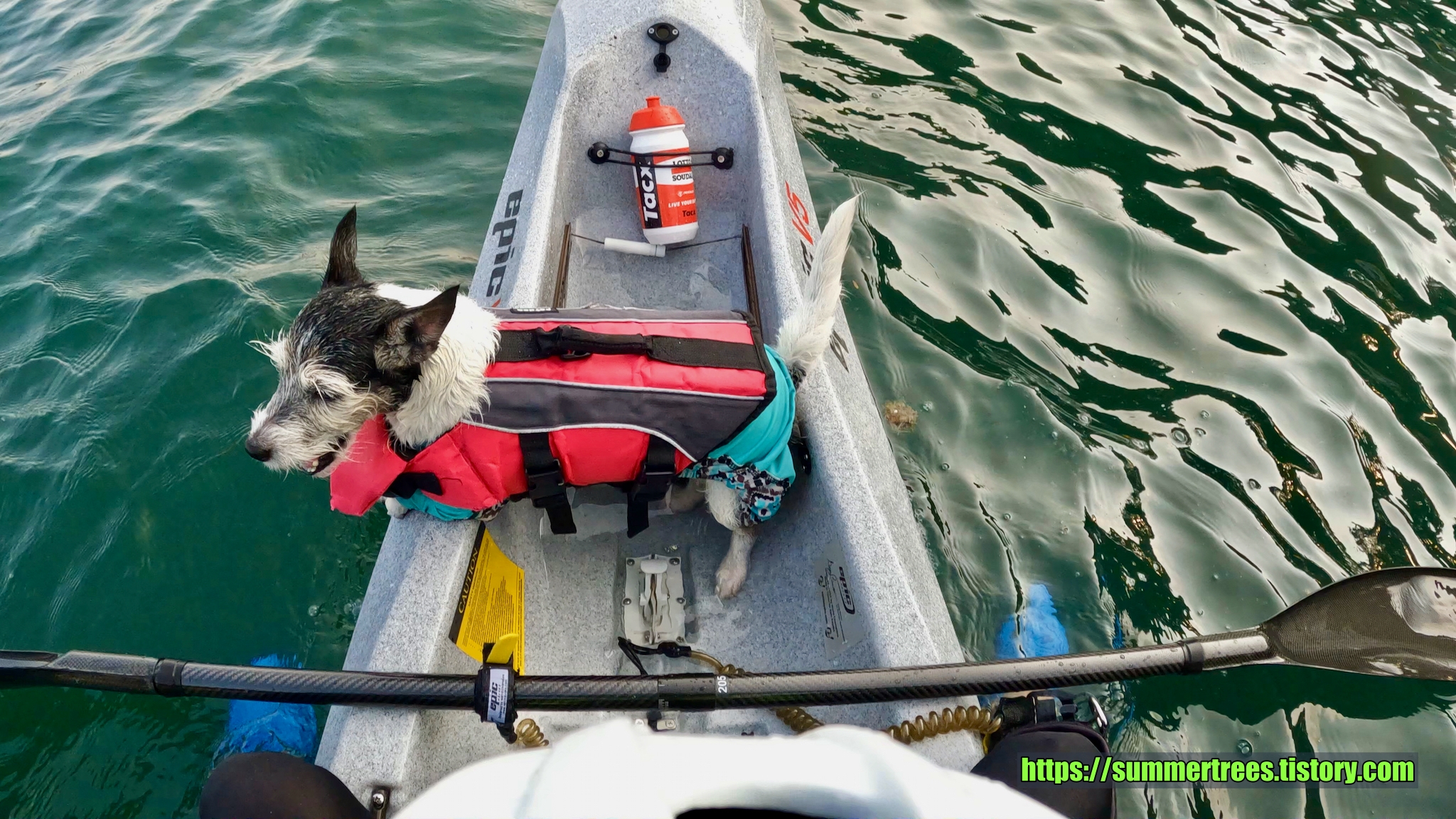 배를 내리고 준비하고 있는데 마야가 먼저 물에 뛰어든다. 마야는 어지간히도 타고 싶었나 보다.