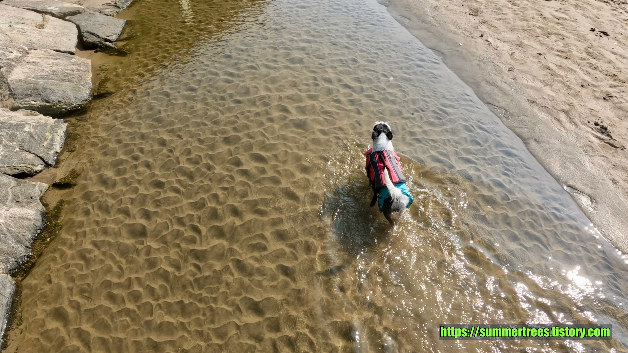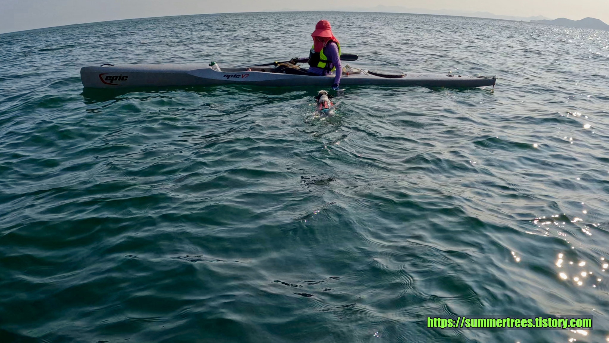 마야는 출발할 때 마님이 부르니 잘 헤엄쳐가더니만 마지막에 휙 돌아서서 되돌아온다. 더 놀고 싶었는지 내게로도 오지 않고 해변으로 가버린다. 미련이 남는가 보다.