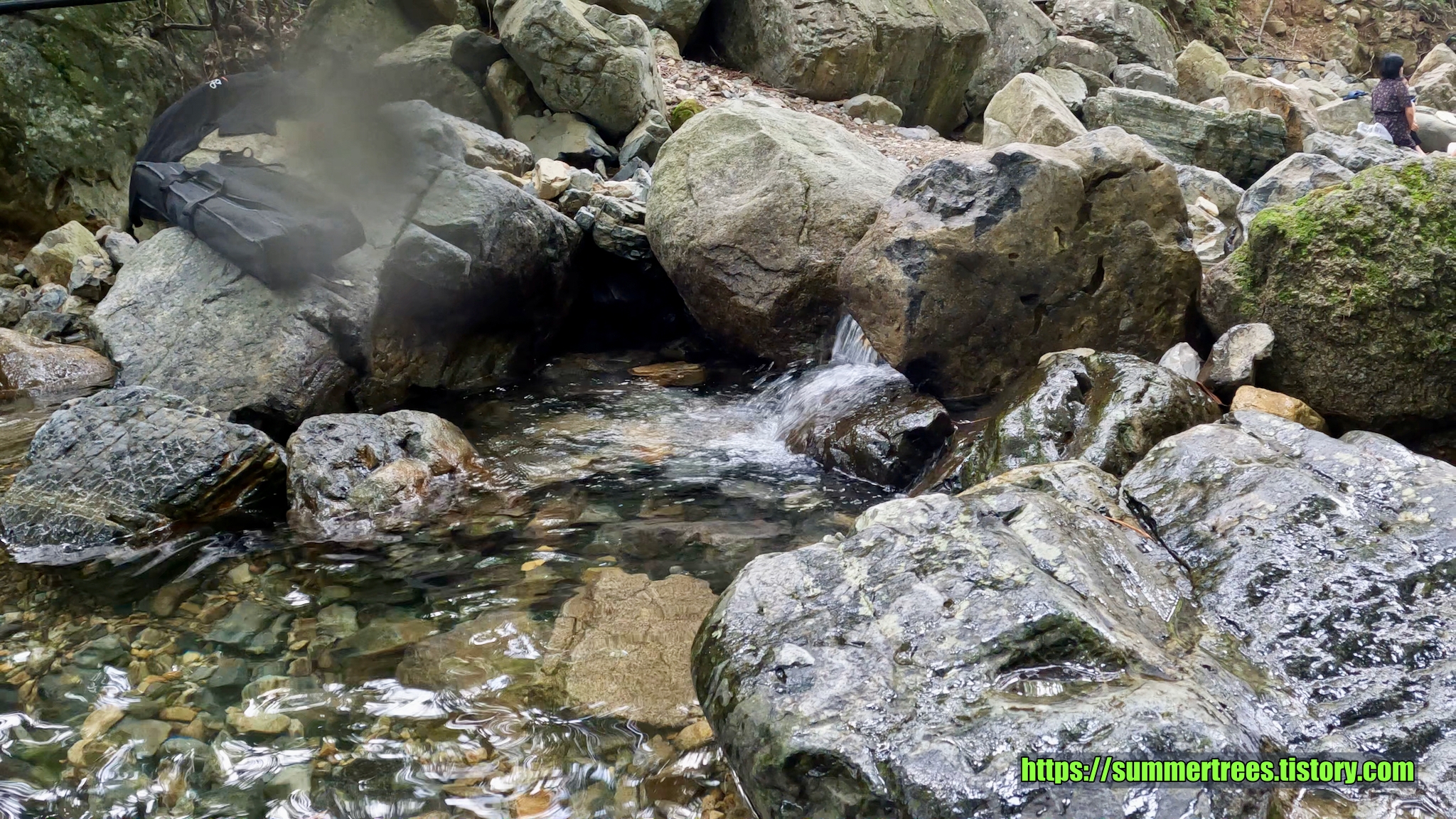 그래서 그런지 물이 참 깨끗했다. 깊은 곳은 아니었지만 적당히 물장구 칠 수 있고 물 속에 앉아서 계곡의 시원함을 느끼기엔 충분했다.