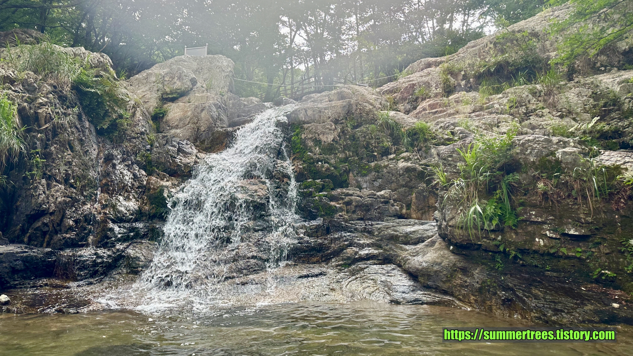 생각보다 작은 크기의 폭포지만 물장구치며 놀기에는 충분한 크기였다. 사람들이 많아 상류에 비해 물이 좀 탁했다. 그리고 진짜 폭포의 재미는 떨어지는 물을 맞는 것이었다.
