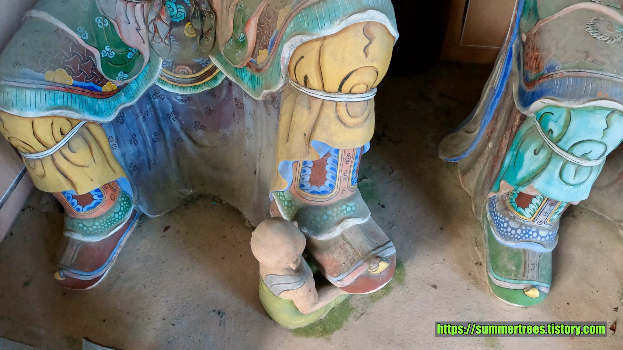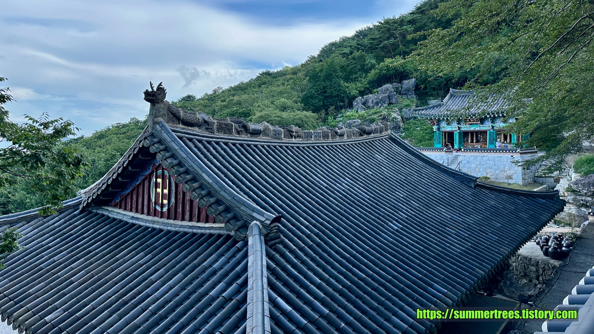 특이하게 대웅전을 용으로 장식했다. 처마 아래 용머리상이 두 개 있는데 삼성각을 지나 대웅전 뒤를 돌면 지붕의 용을 또 볼 수 있다.