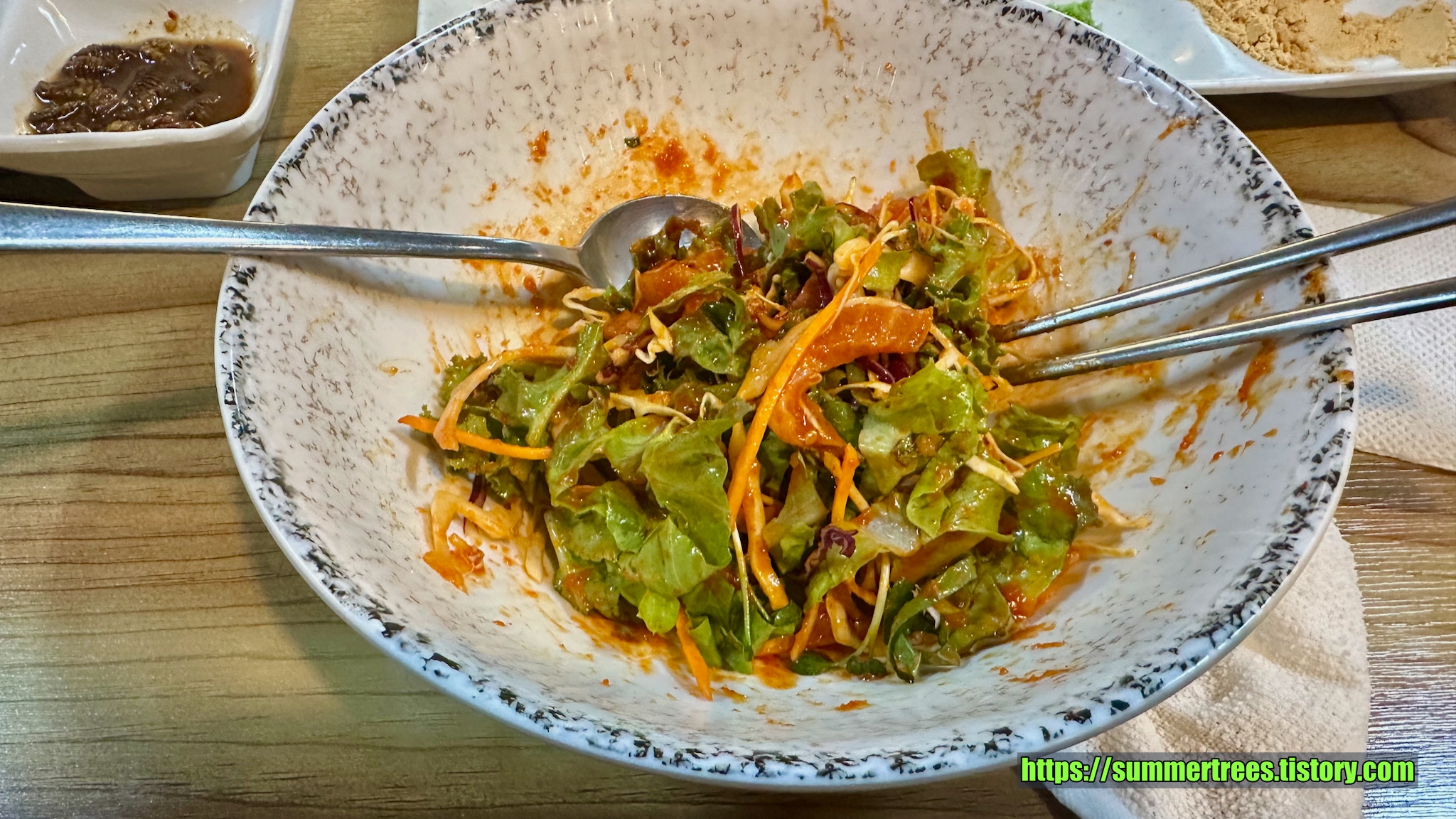 내가 갔던 송어횟집은 모두 야채와 비벼먹는 방식이었는데 이곳은 쌈 옵션이 별도로 있다.