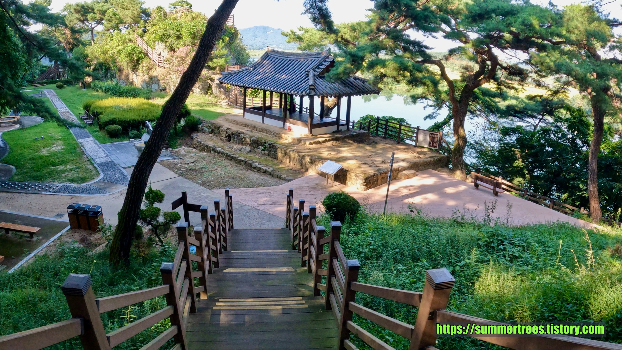 강가에 도착하면 무우정이라는 정자가 있고 그 옆의 조그만 바위산이 경천대다.