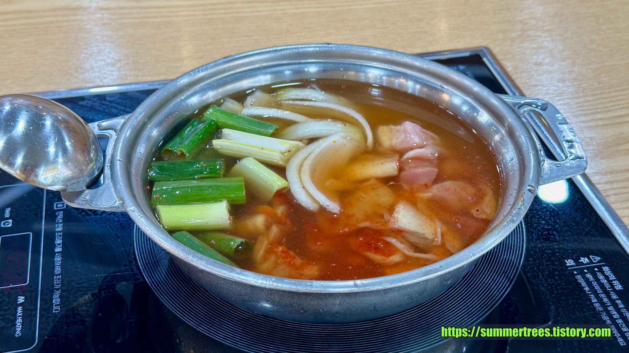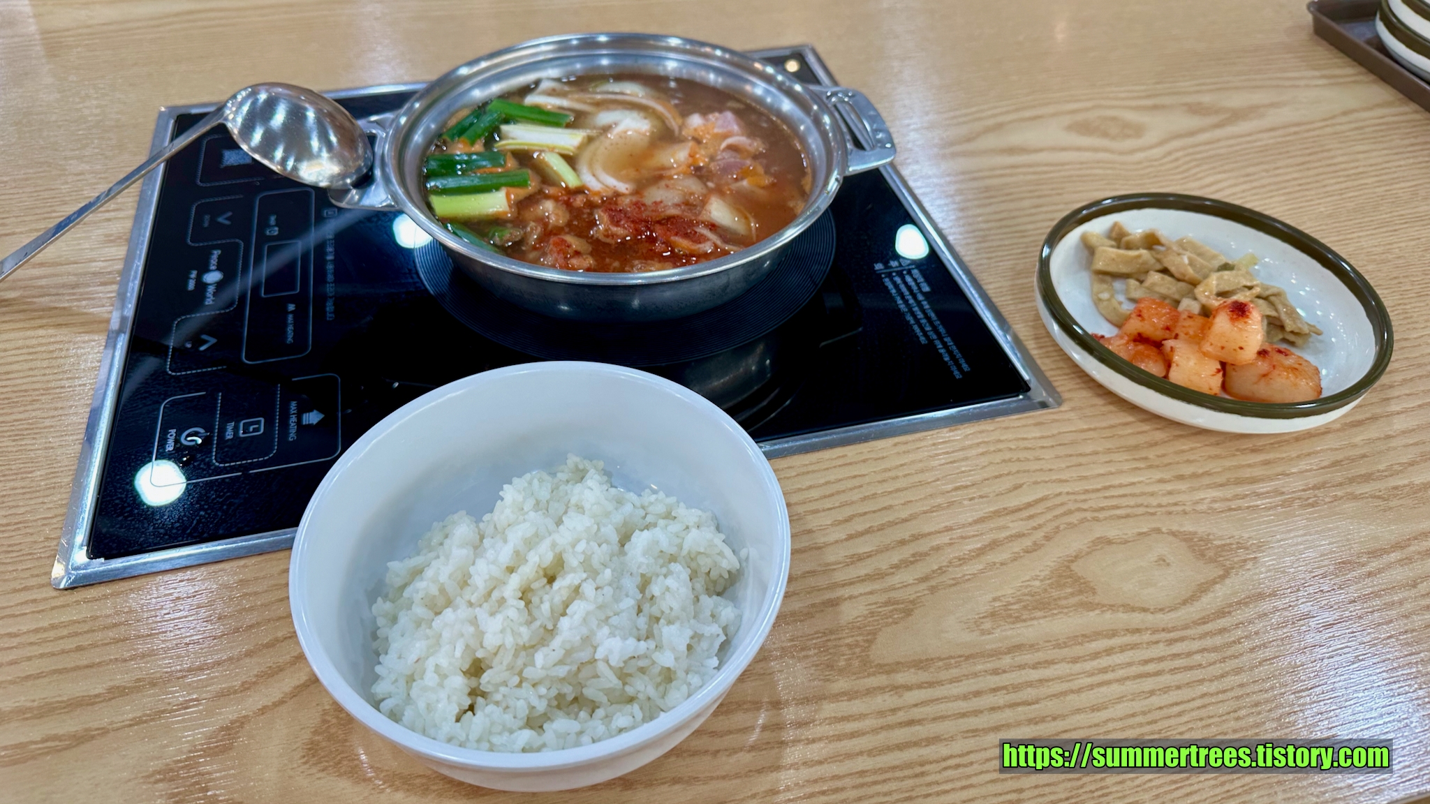 이번엔 콩나물국밥이 아닌 김치찌개를 주문했다. 맛있는 김치찌개는 아니고 그냥 급한 김에 간단히 먹을 수 있는 수준이다.