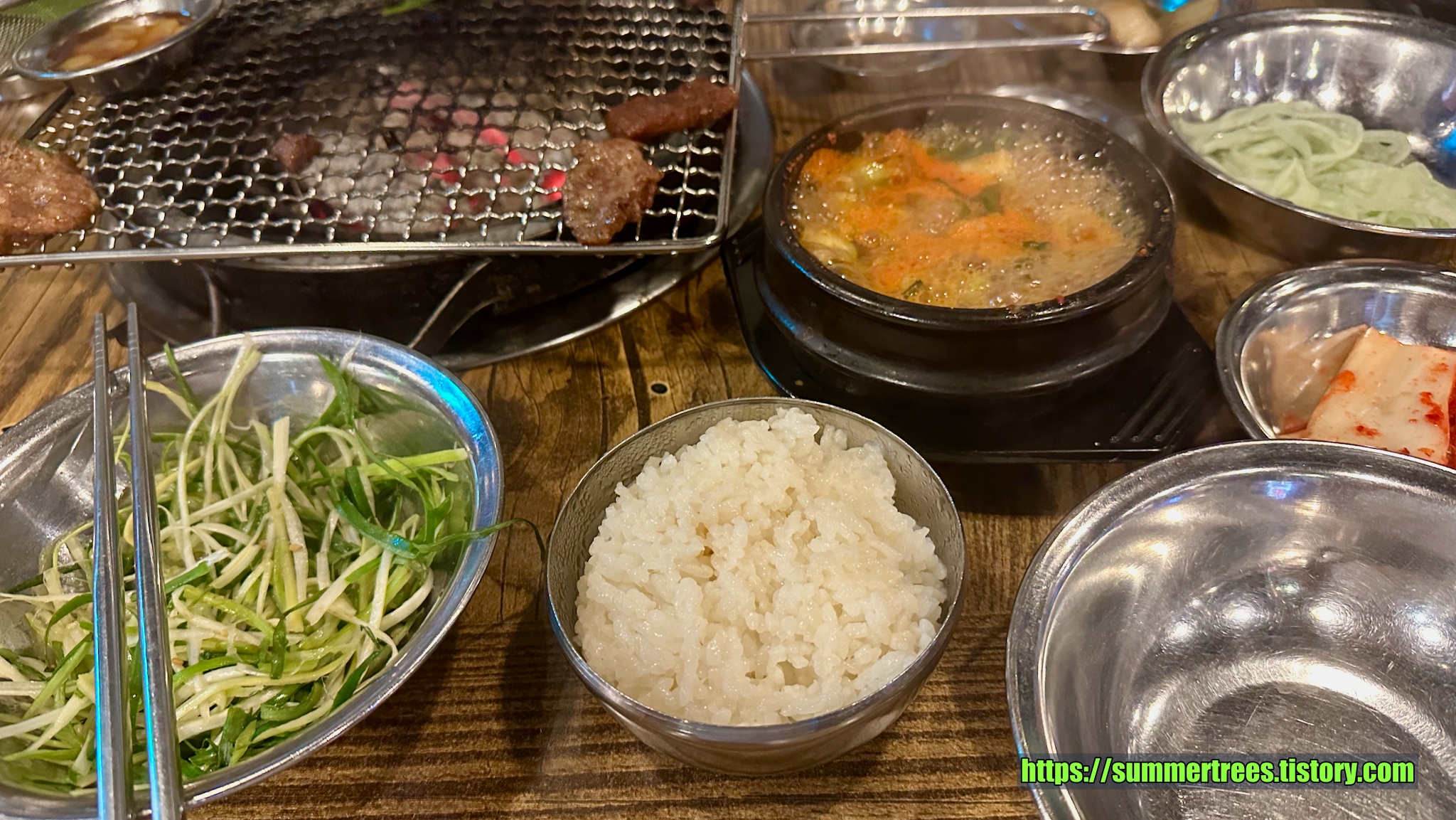 석쇠세트를 먹고 양념갈비살을 추가로 시켰는데, 양념보다는 갈비살이 더 낫다.