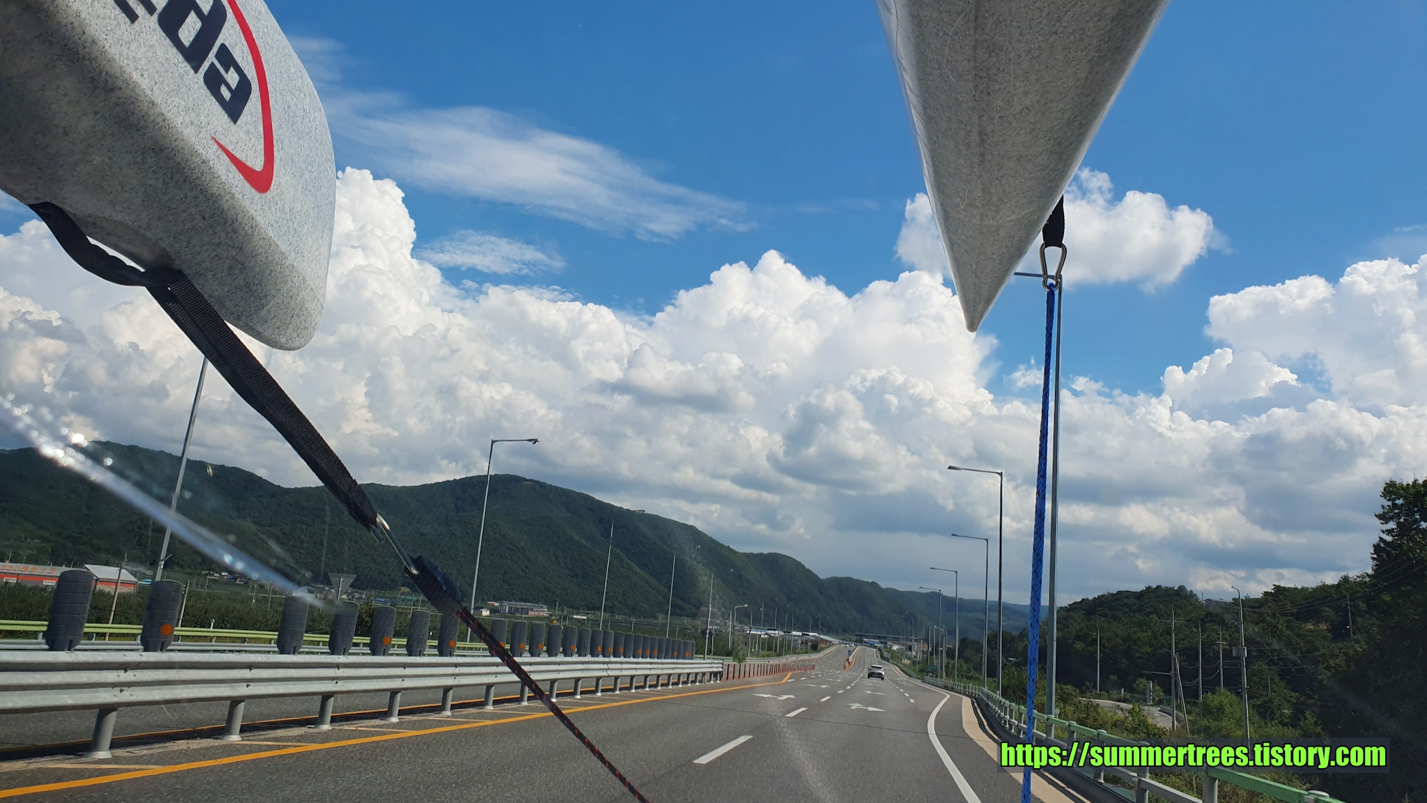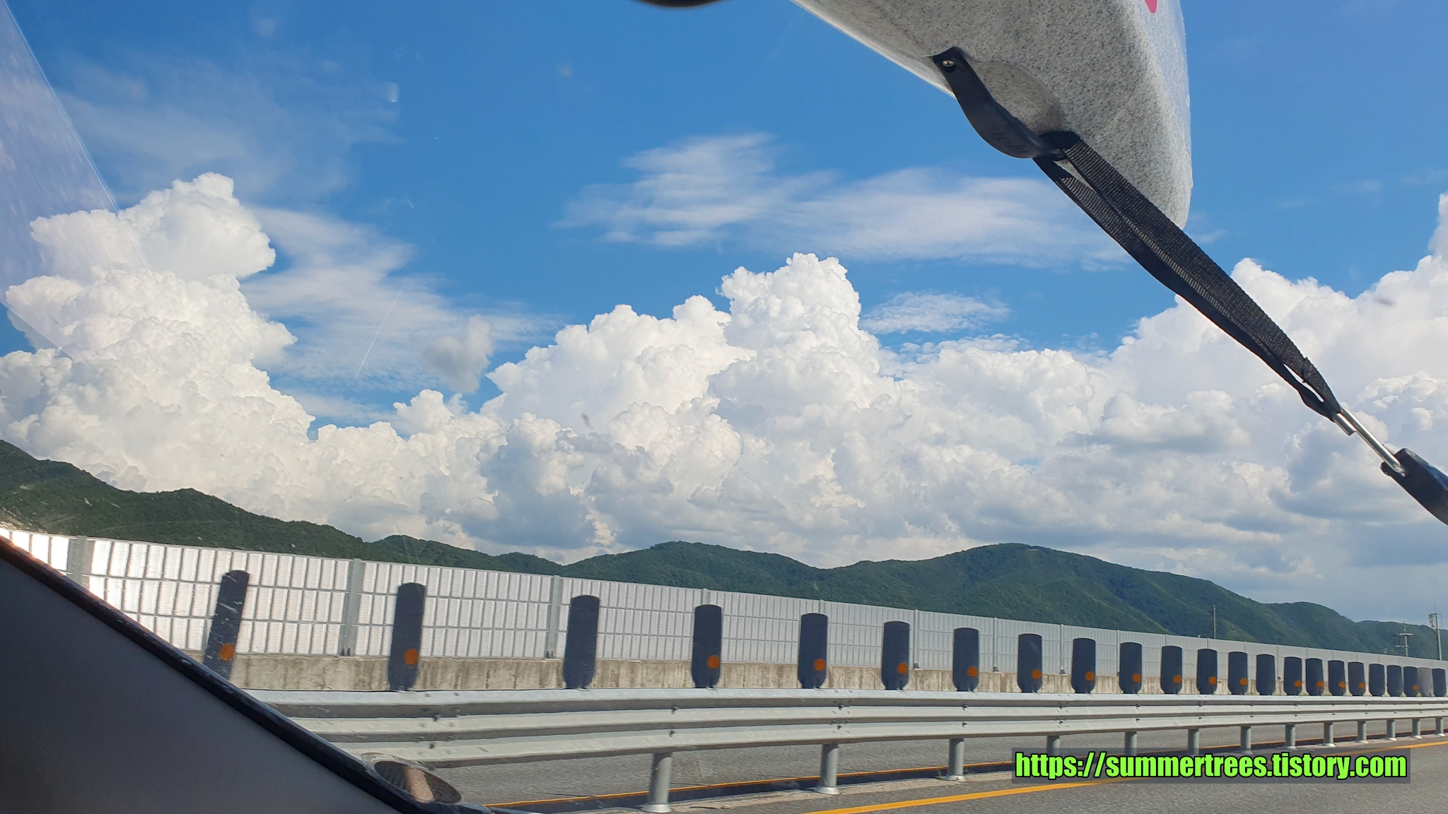 다음 목적지 주산지까지 가는 동안 하늘의 구름을 보며 운전했는데 구름이 너무 웅장하고 이뻤다. 이번 여행의 하이라이트는 구름일까 하고 생각할 정도였다.