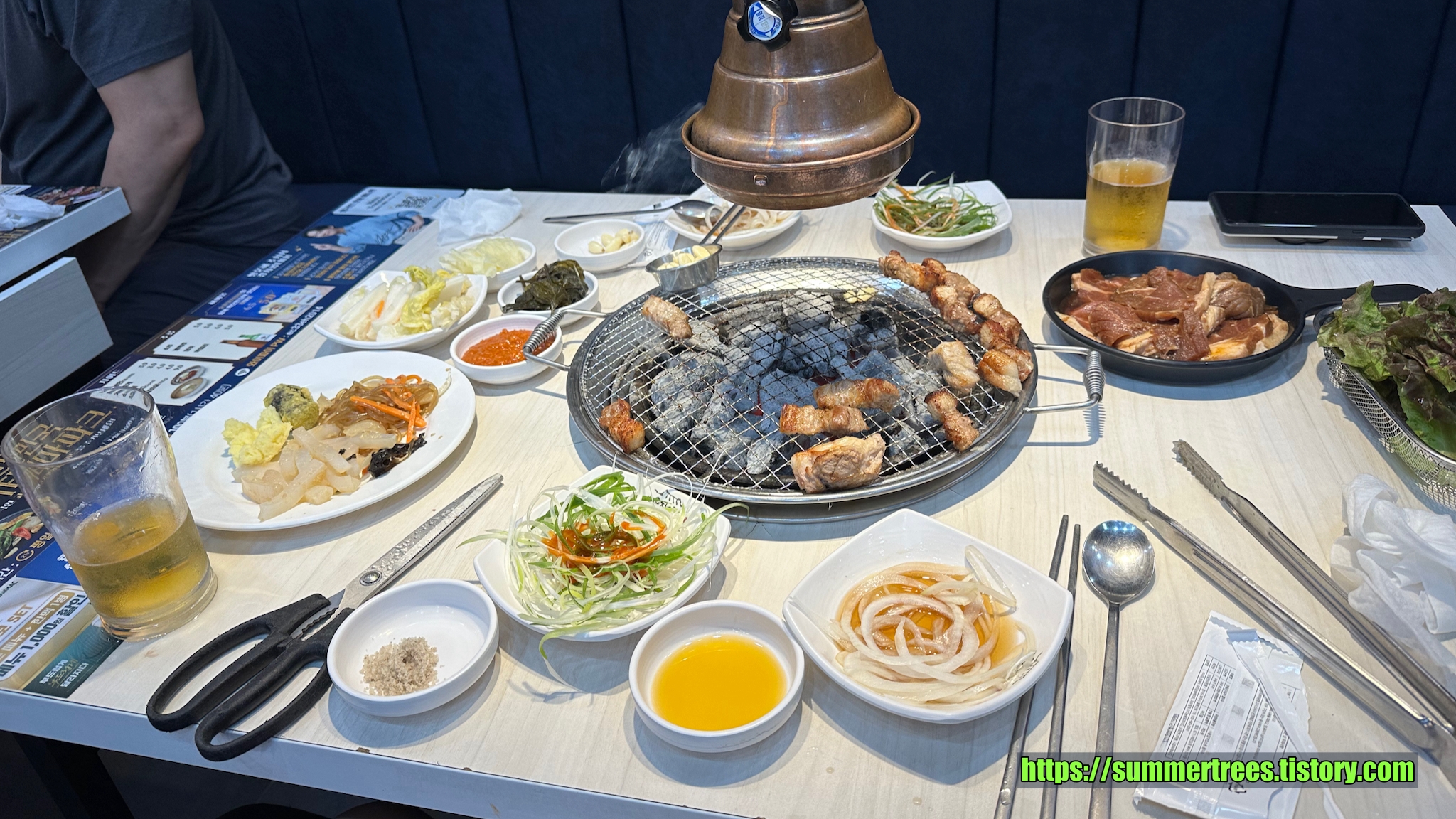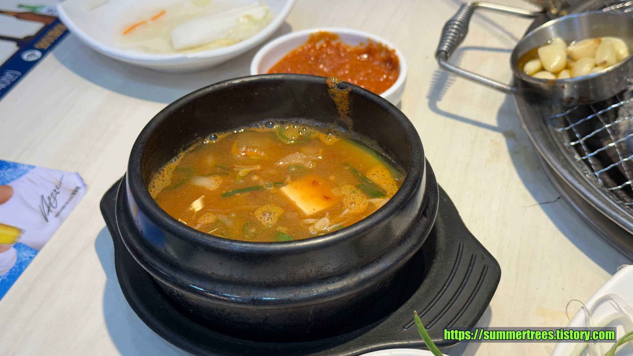 처음엔 생삼겹을 먹었는데 생각보다 아주 괜찮았다. 맥주도 무제한으로 마실 수 있는 메뉴를 주문했는데 무제한 맥주도 맛이 괜찮았다. 하지만 마지막에 시킨 된장찌개는 약간 실망스러웠다.