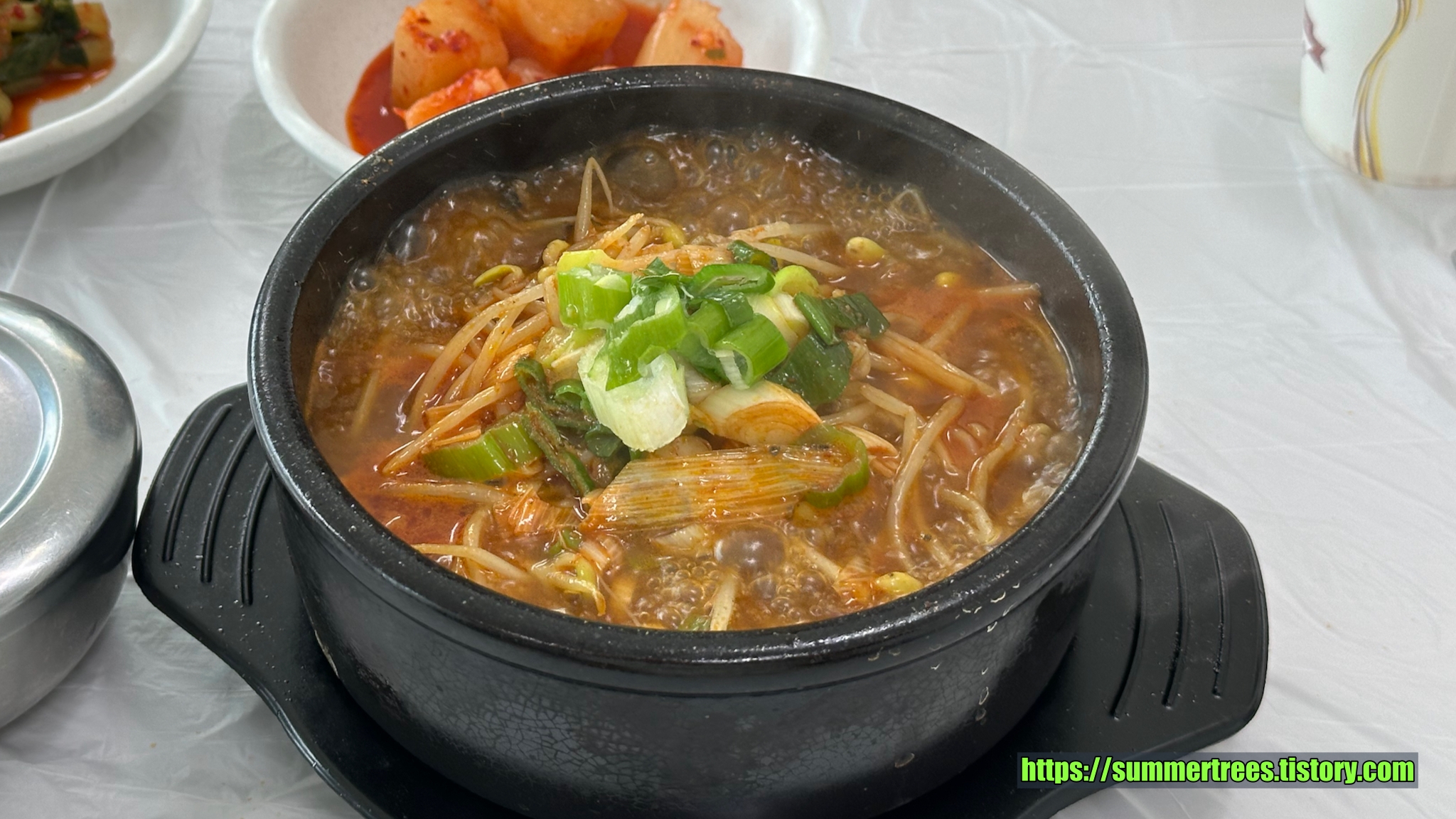 나는 양평해장국, 마님은 뼈해장국을 먹었다. 양평해장국은 수구레국밥, 장터국밥과 비슷한게 소 내장, 선지, 콩나물 등을 넣고 얼큰하게 끓인 것이었다. 내가 썩 좋아하는 맛은 아니었다.