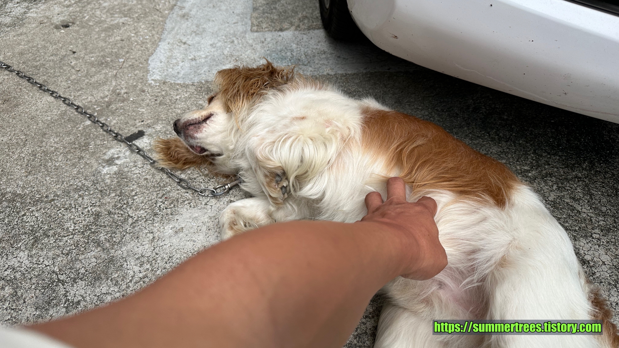 전날 마야가 물놀이를 하면서 죽은 생선을 찾아 뜯어먹었는데 배에 탈이 났다. 차에서 마야가 느끼지도 못하는 사이 설사가 줄줄 샜다. 큰일이다 싶어 급히 병원을 찾았다. 다행히 평일이라 울진에서 병원을 찾을 수 있었다.
