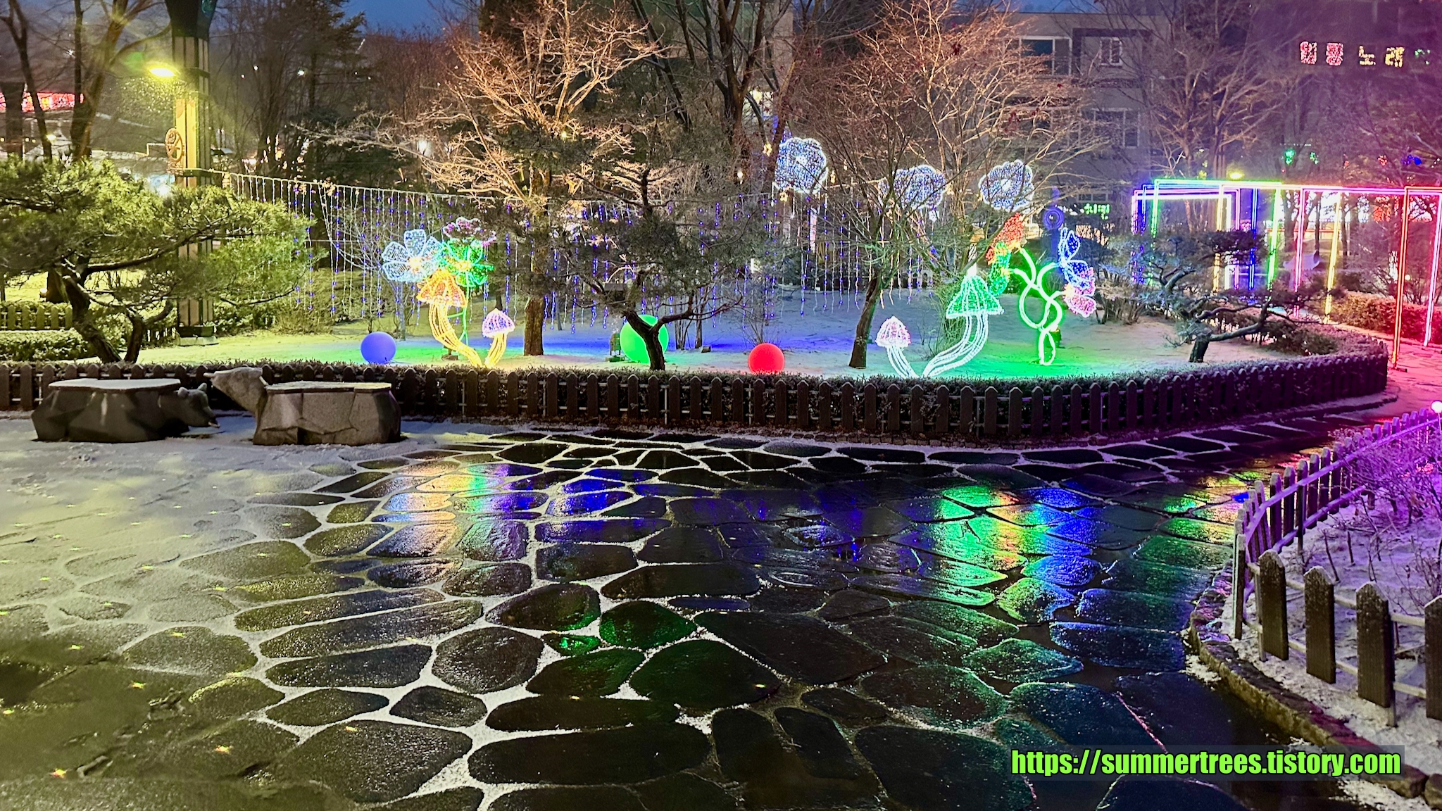 마침 눈이 내려 너무 이뻤다.
